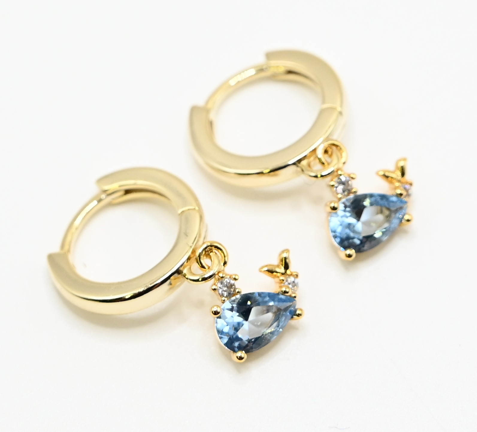 Gold-Plated Sterling Silver Earrings with Blue Whale Zircon Stone