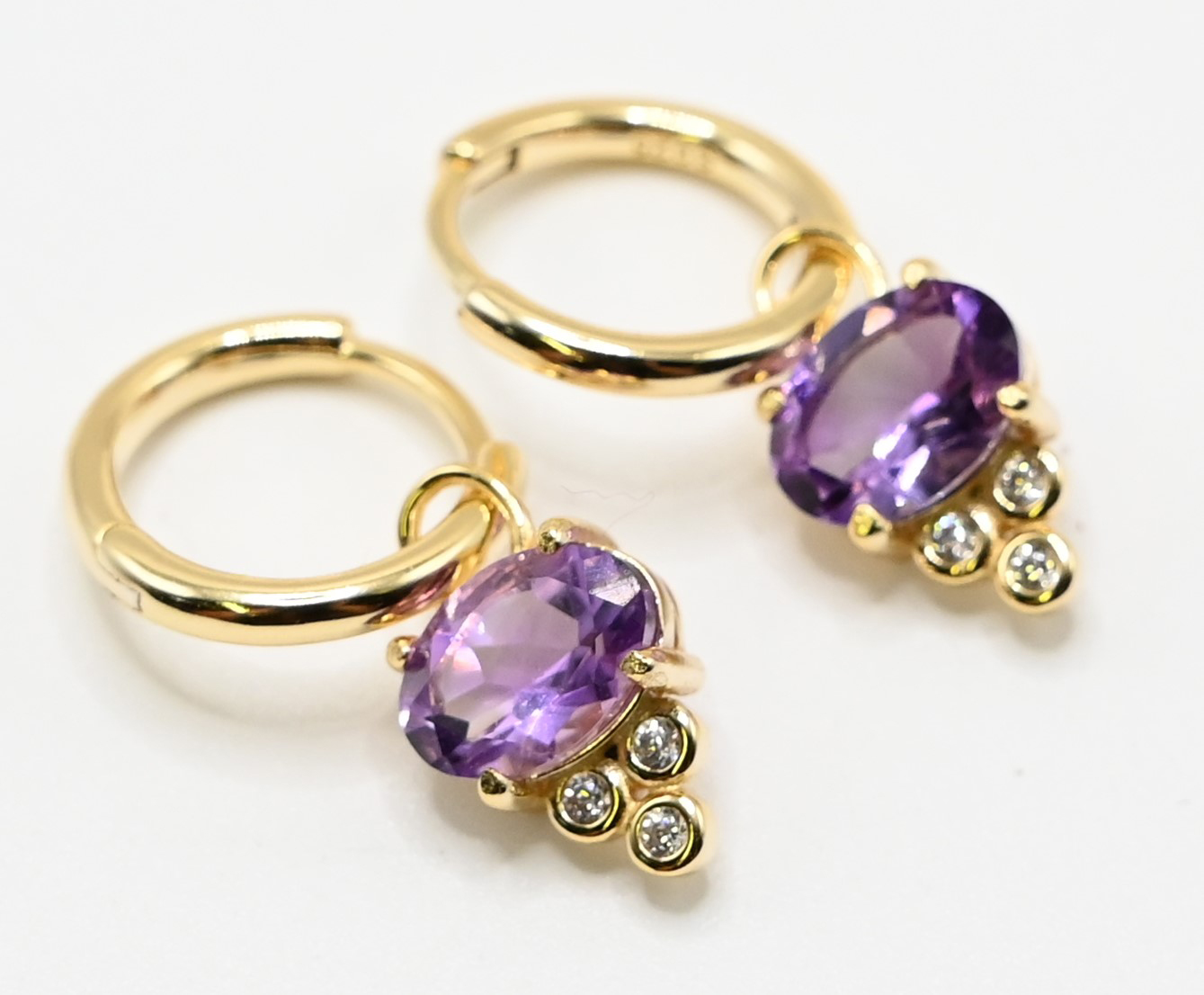 Gold-Plated Sterling Silver Earrings with Amethyst and Zircon Stone.
