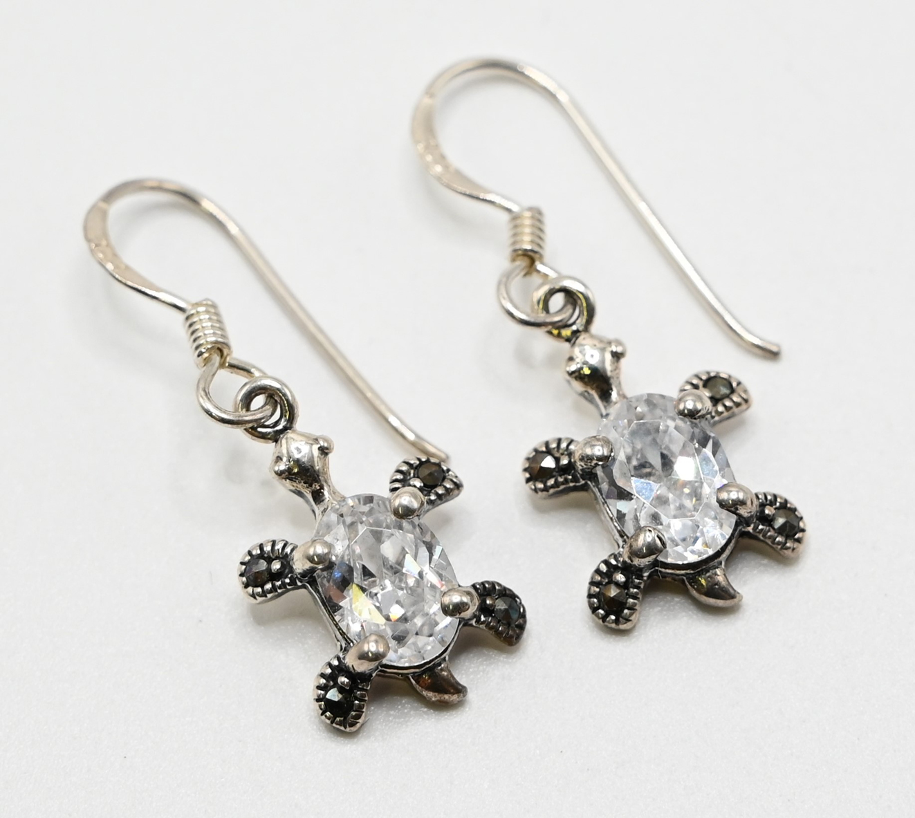 Sterling Silver Earrings with Turtle Sterling Silver Earrings with Turtle Zircon and Marcasite Stone.