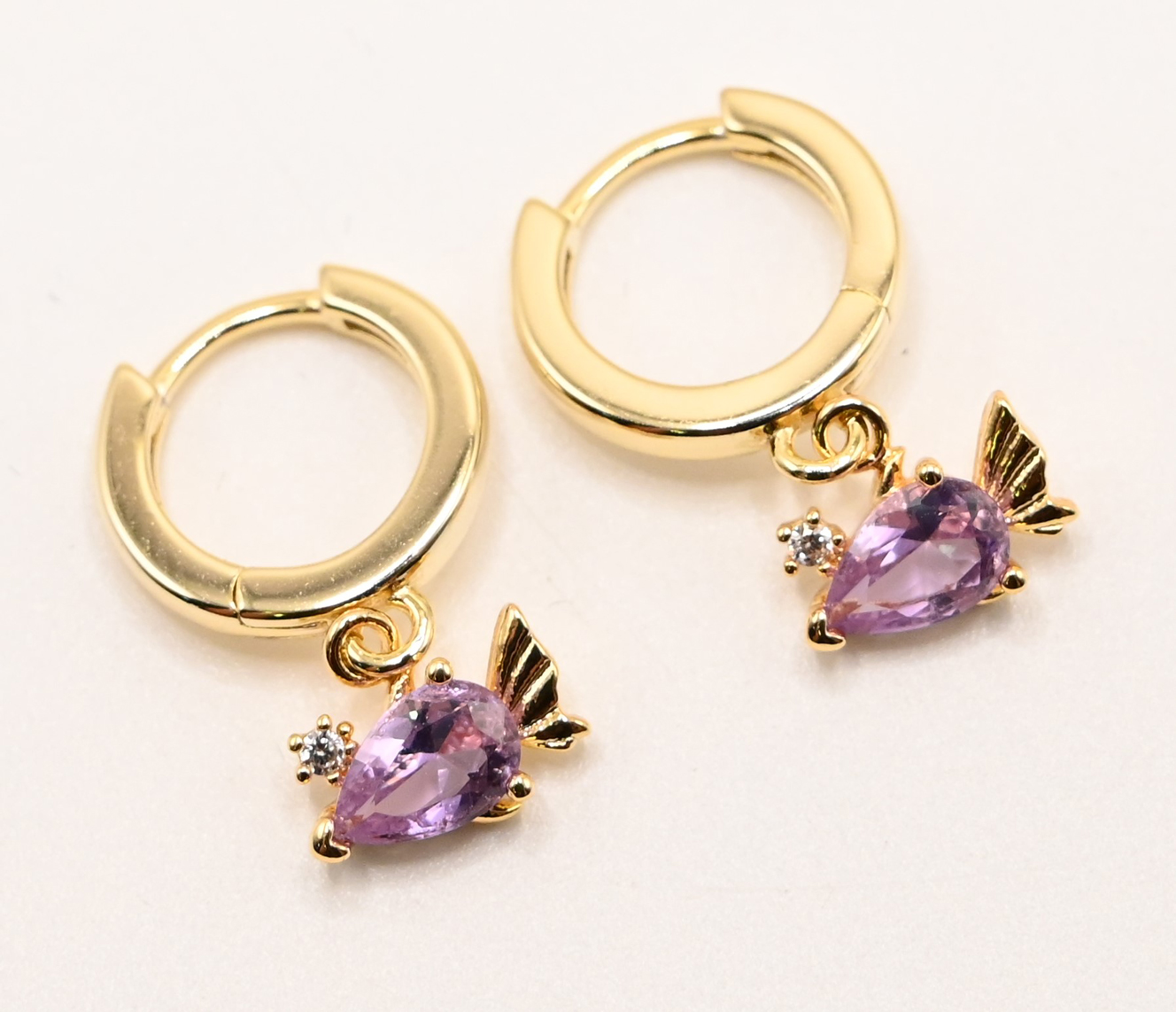 Gold-Plated Sterling Silver Earrings with Amethyst Color Zircon Fish.