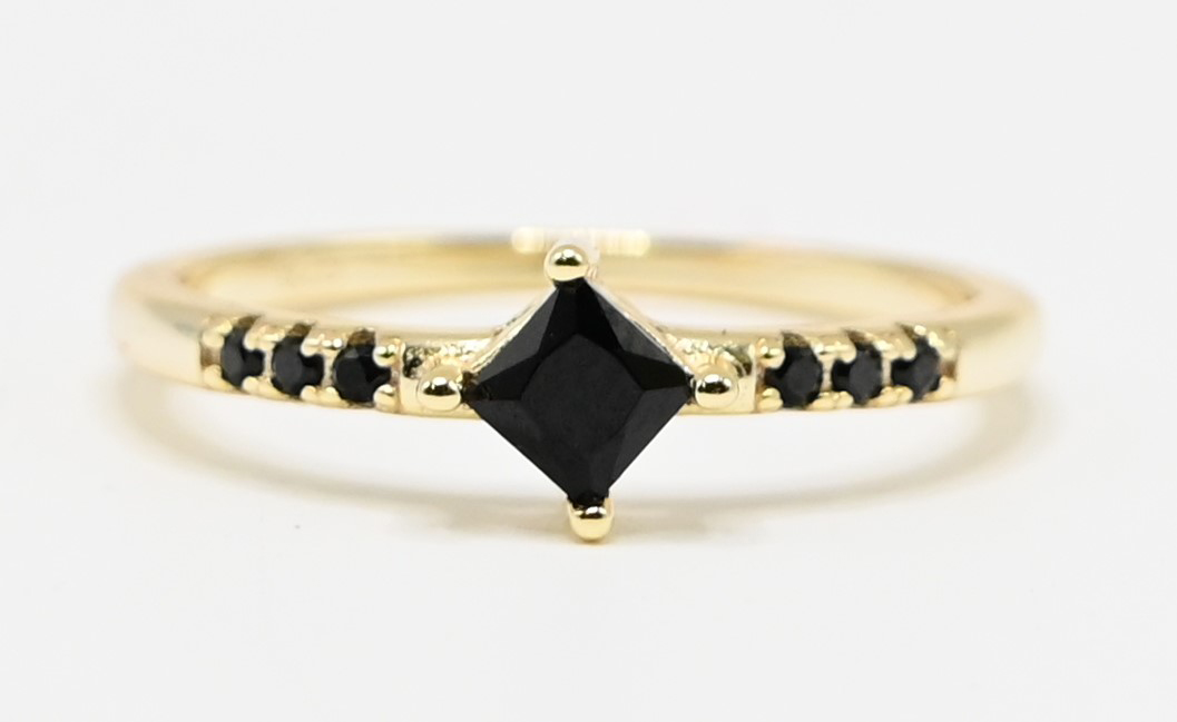Gold-Plated Sterling Silver Ring with Black Crystal Stones. Size 6.