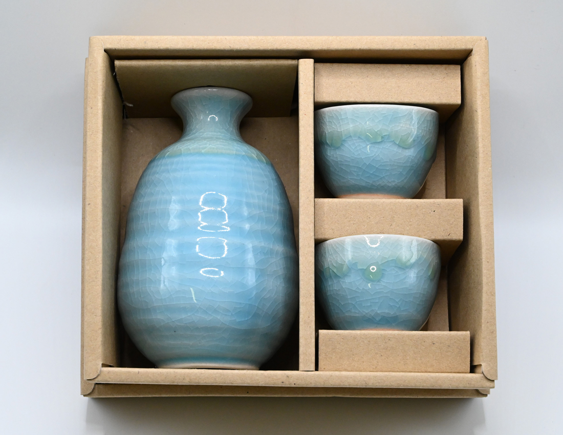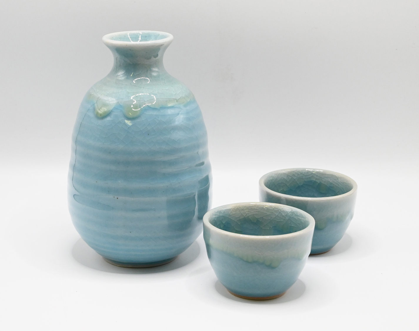 Sky Blue Glazed Sake Set from Japan. Comes in gift box.
