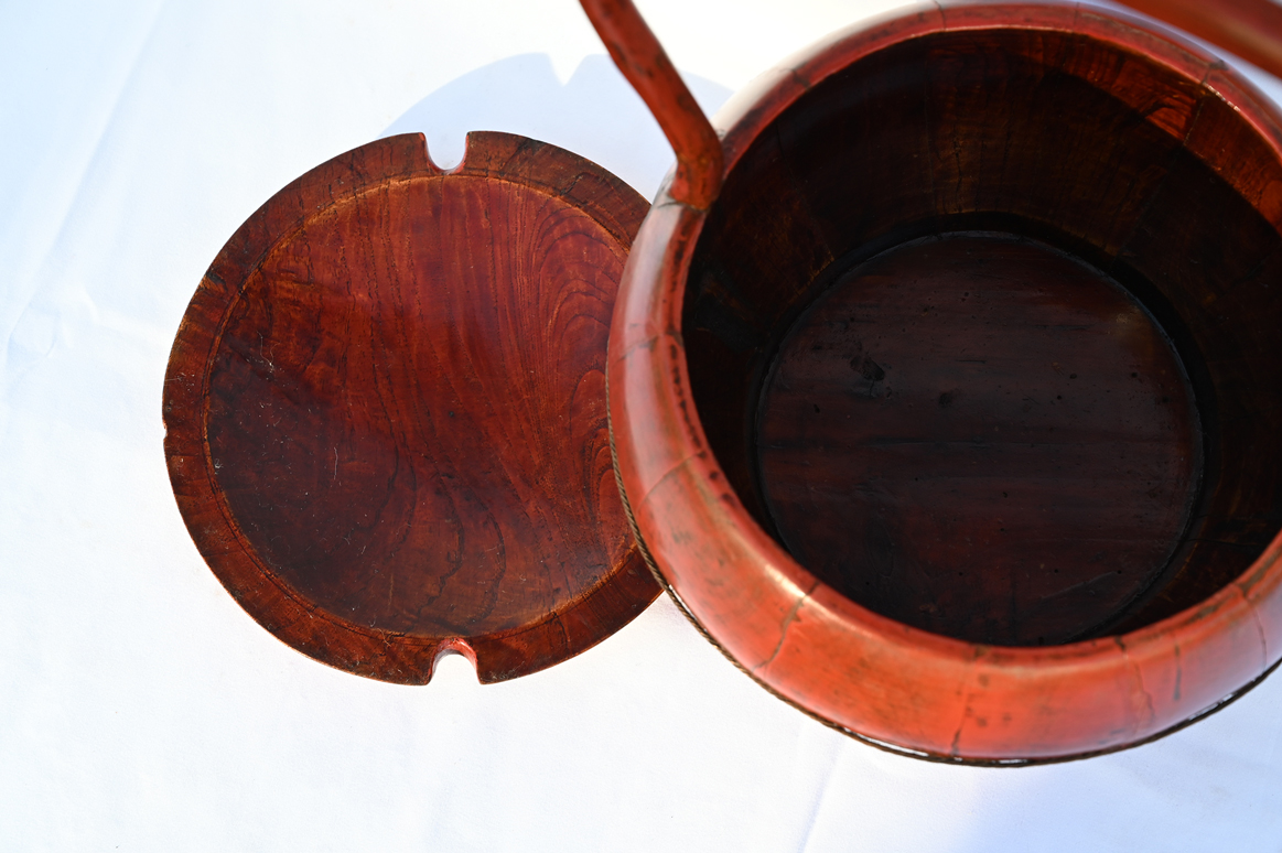 Wooden objects with old red pigment made from the Organic mineral compound have long been treasured in the central coastal area in China near Ningbo, Shanghai and other cities, and can be found in several private museums.