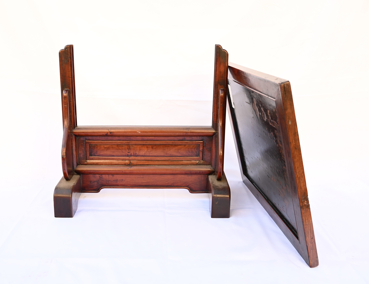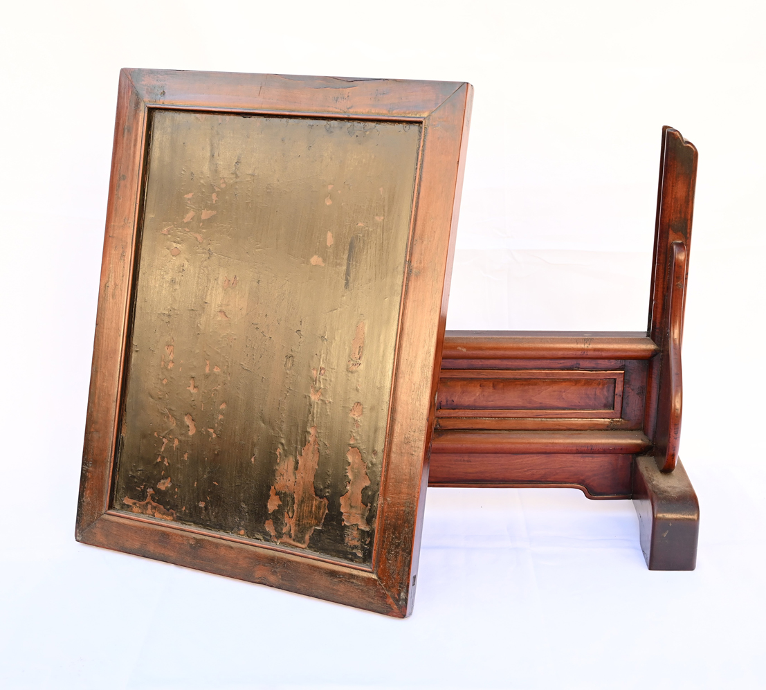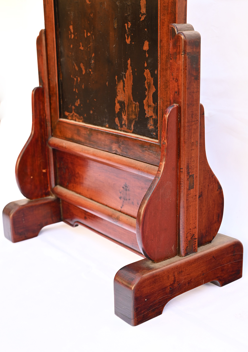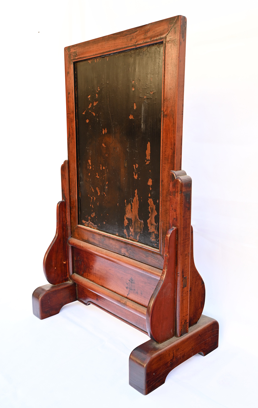 Rare Hardwood Table Screen with Old Black Lacquer.