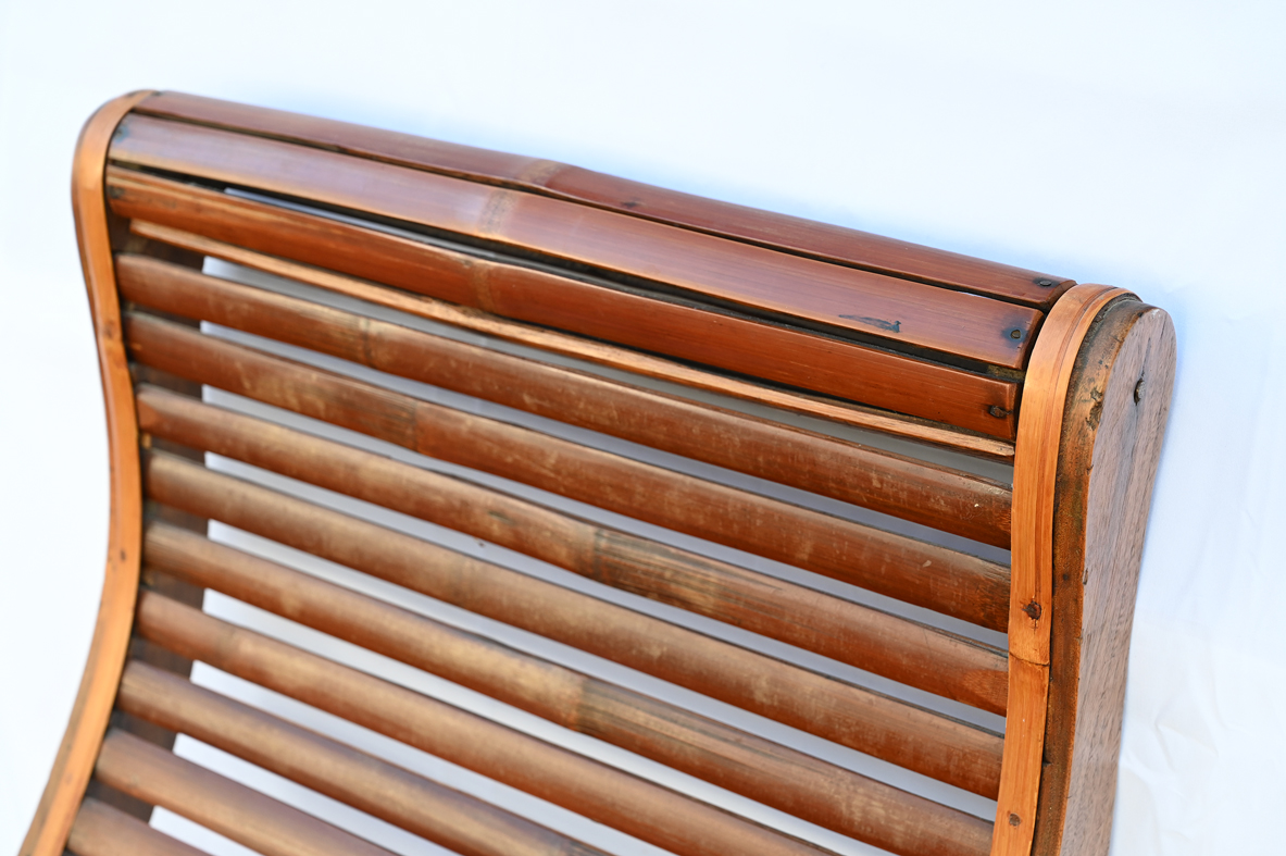 This beautifully made lounge style chair is incredibly comfortable. And because of its slightly smaller size, compared to other similar style lounge chair with bamboo slots, this lounge chair might have been made for a lady. The curved seat, which is also made of broad band bamboo, is scientifically made to hold the human body and weight in the most luxury way, providing relaxation and comfort.