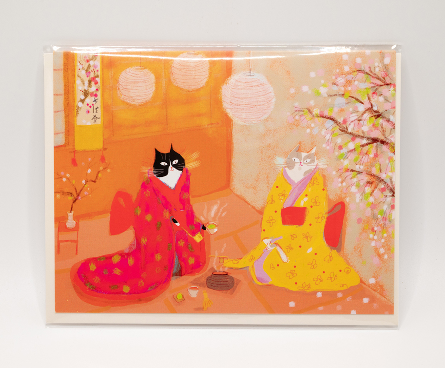 Japanese tea ceremony cat card aka Matcha Cats.