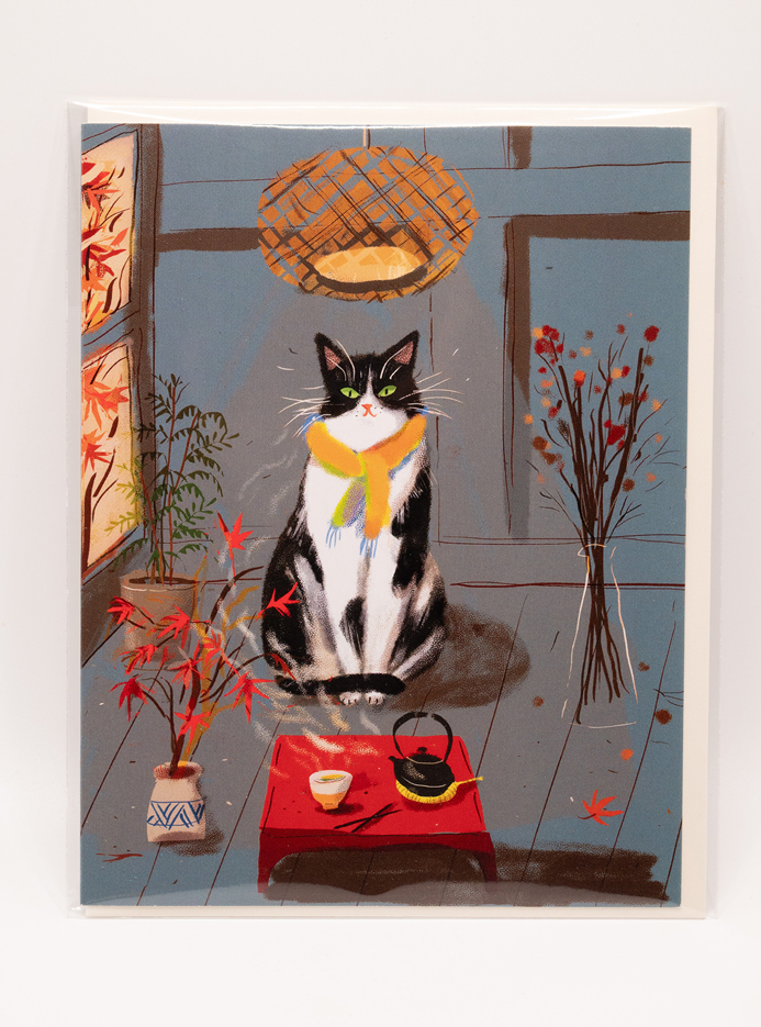 Blank Greeting Card, Single Cat with Tea Ceremony