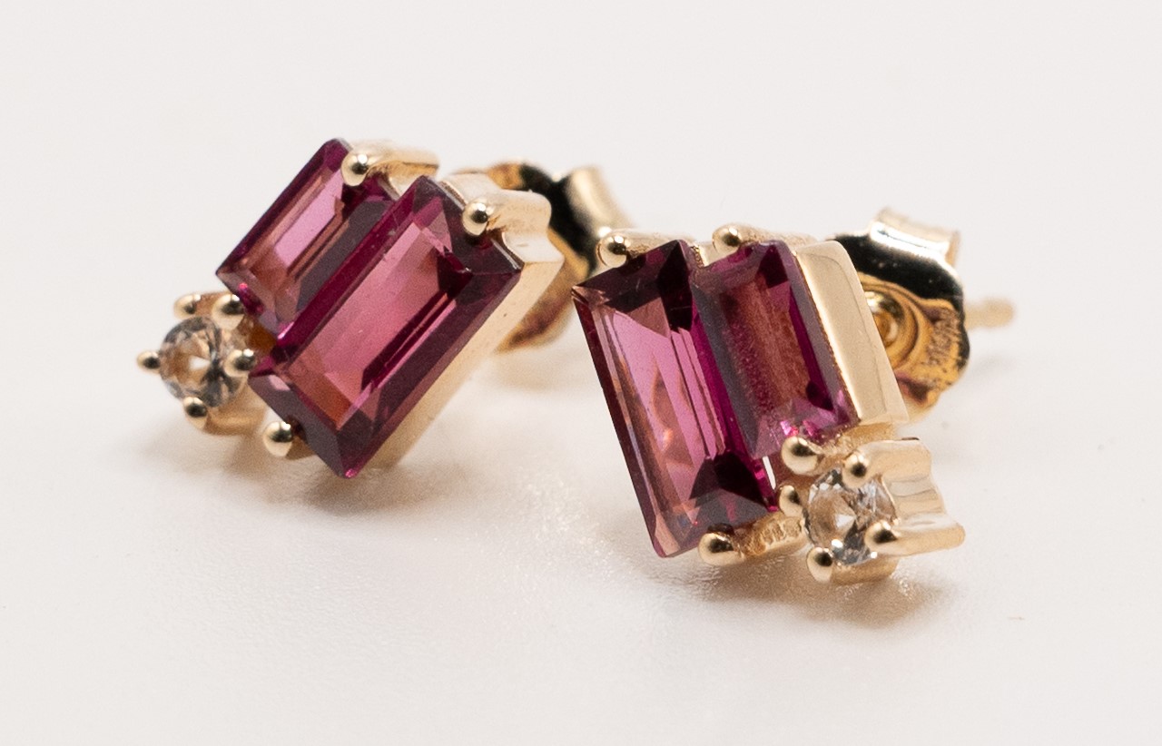 14K Solid Gold Rhodolite Garnet Stud Earrings