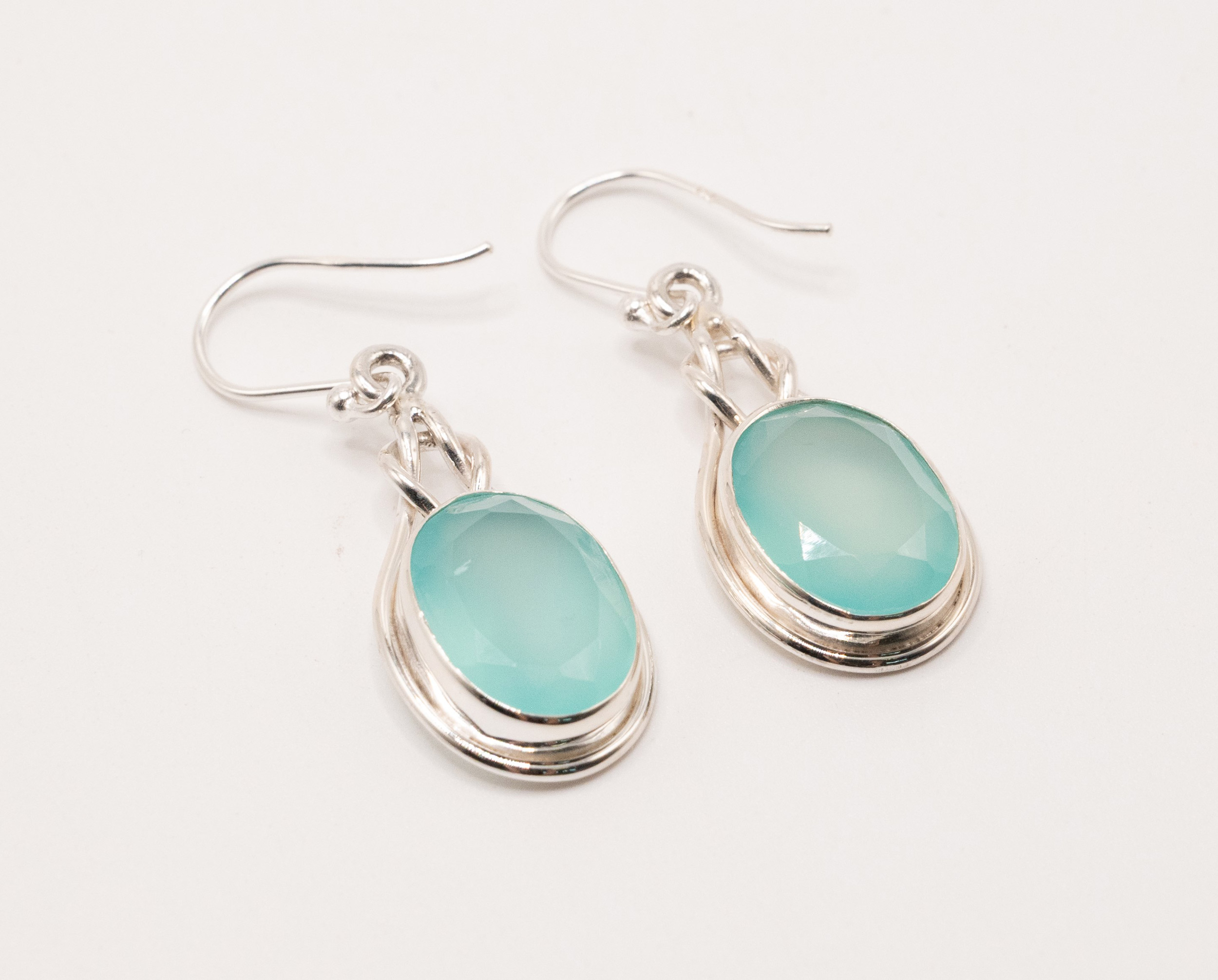 #29005 Sterling Silver Earrings with Large Chalcedony Drop