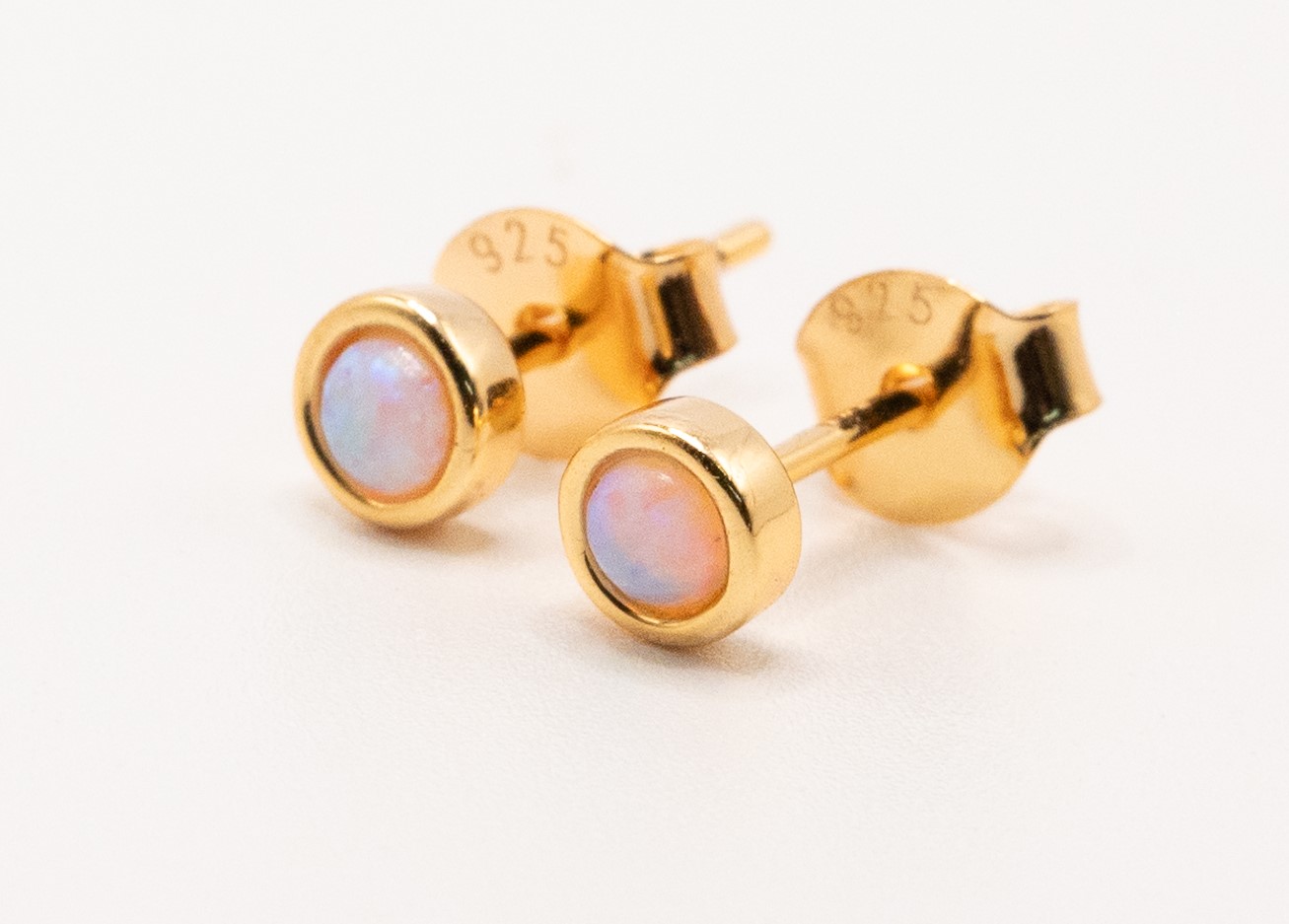Small Gold-Plated Sterling Silver Stud Earrings with Opal