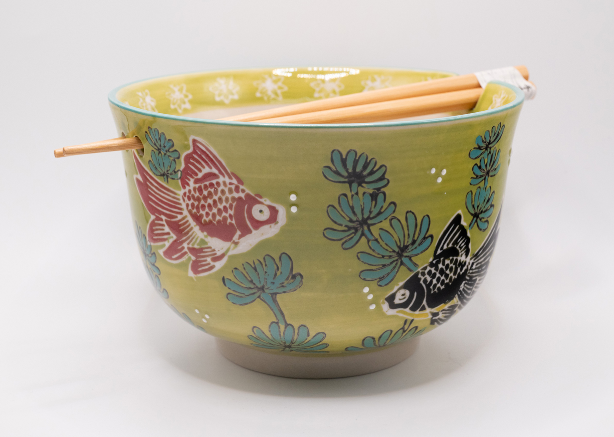 Large Bowl with Chopsticks Set, Green Bowl with Koi Fish