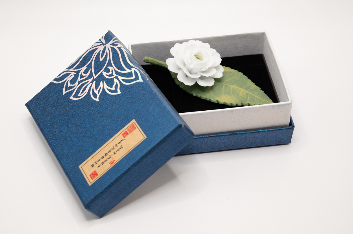 Hand-Made Clay White Camilla Flower Incense Holder. Comes with a nice padded gift box.