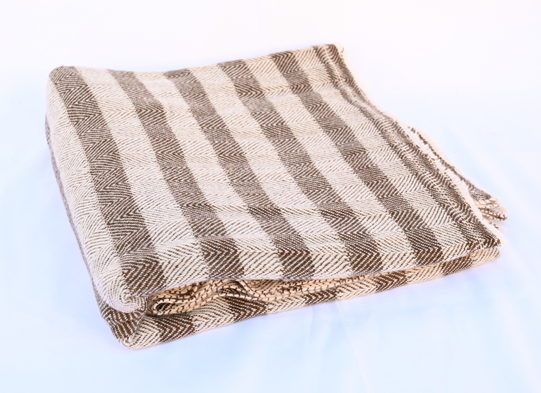 Hand-Woven Fine Quality Natural Cashmere Blanket with Herringbone Stripe Design from Nepal.