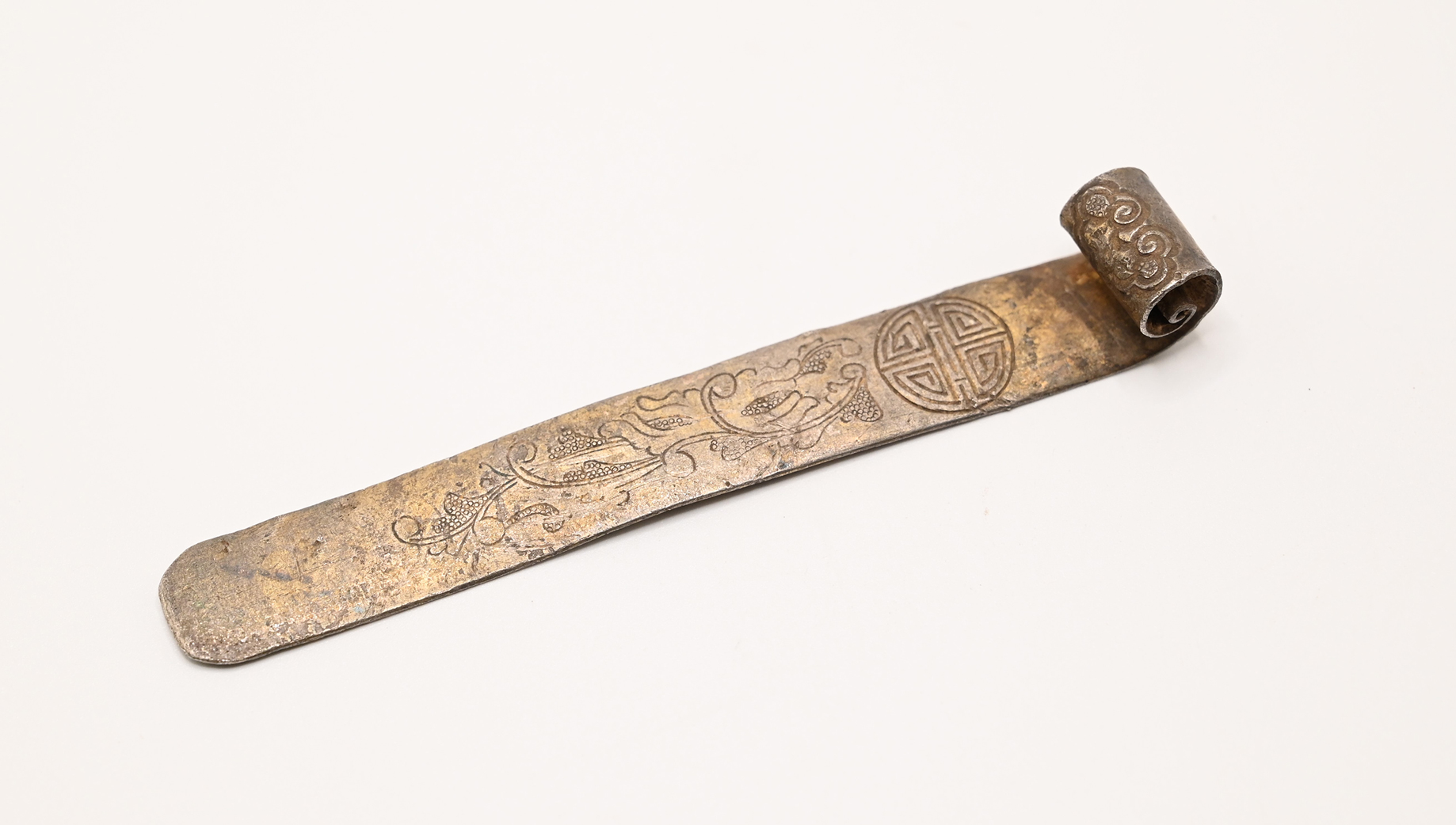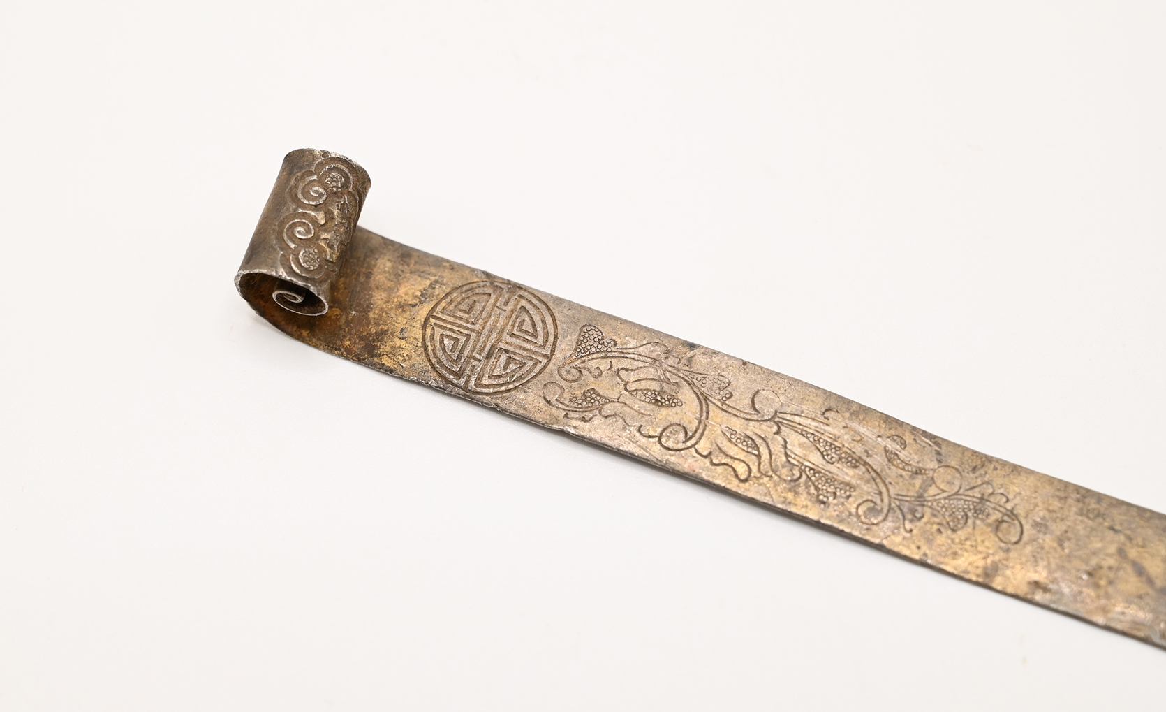 #29343 Antique Carved and Signed Chinese Silver Ornament with Shou and Floral Design