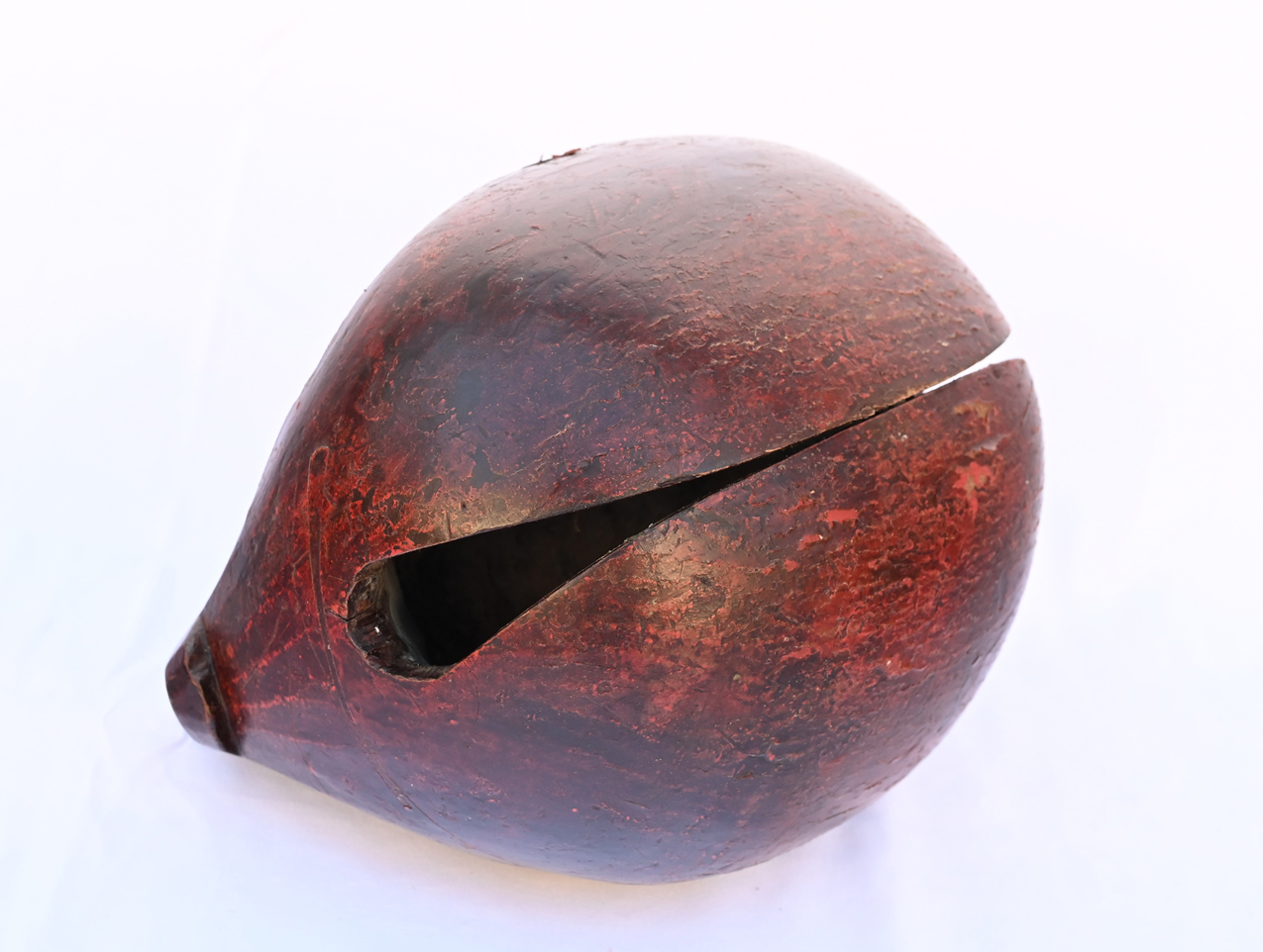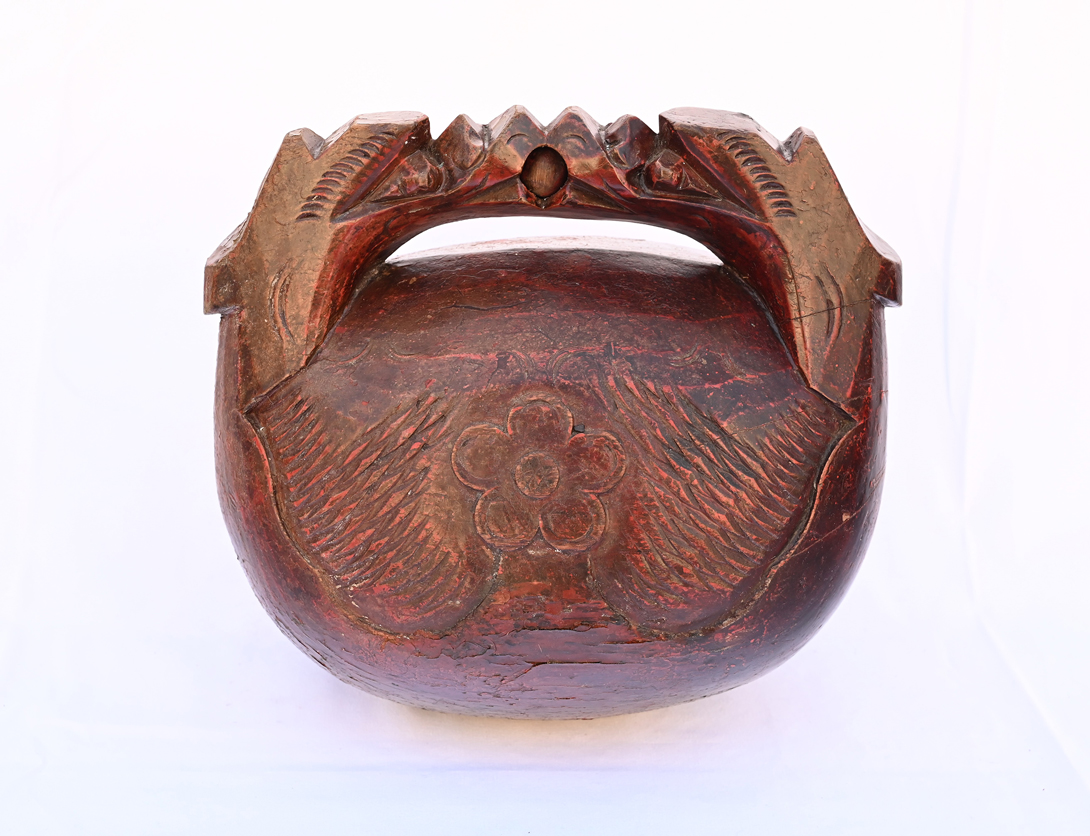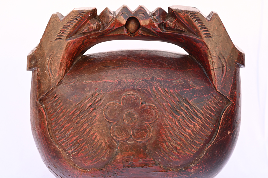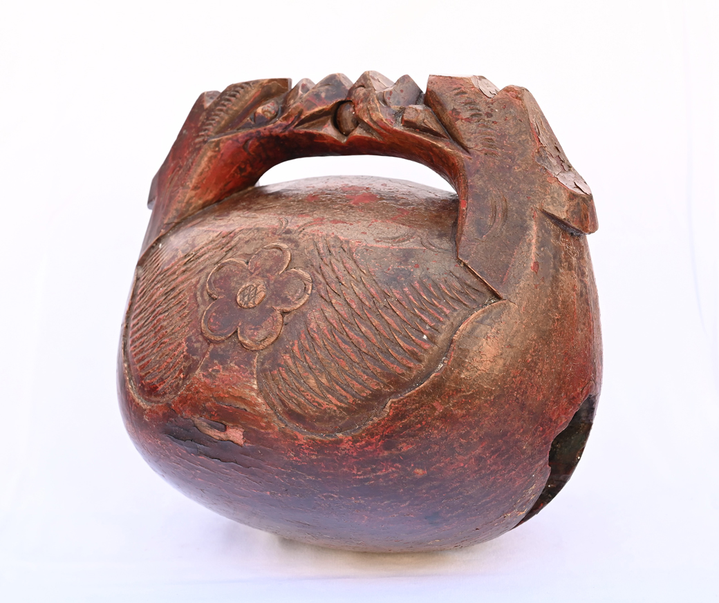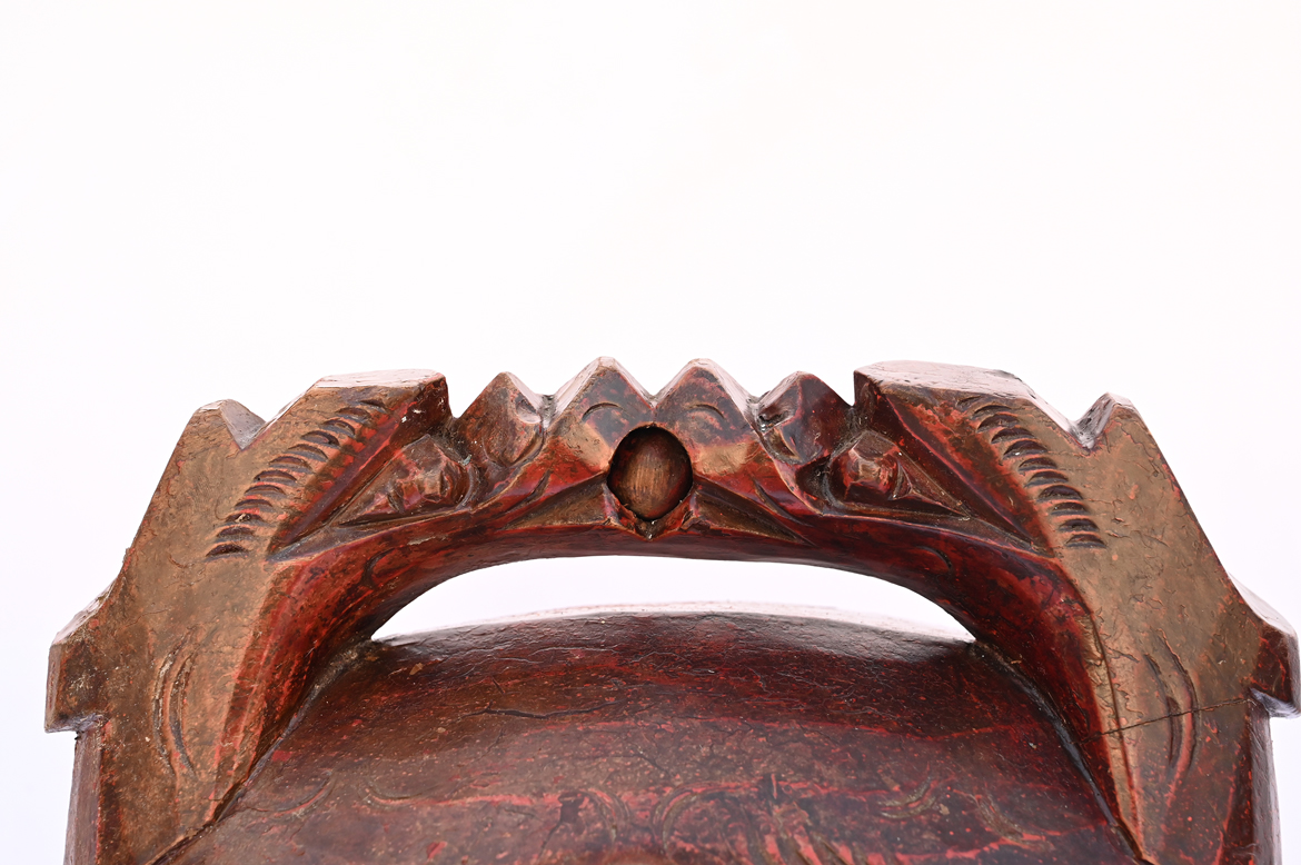 #29351 Antique Wooden Gong with Carved Dragon Handle in Original Red-Brown Lacquer