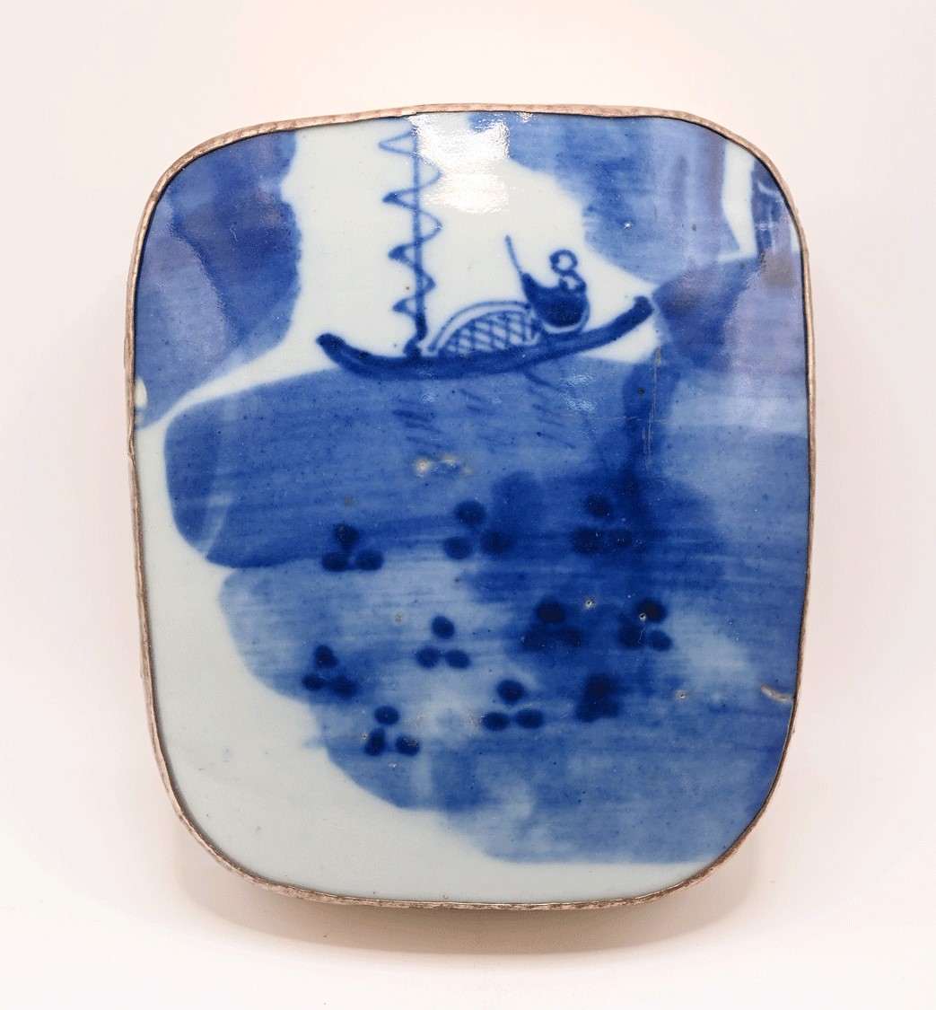 Medium Szie Shard Box with Antique Blue-and-White Shard, Man and Boat.