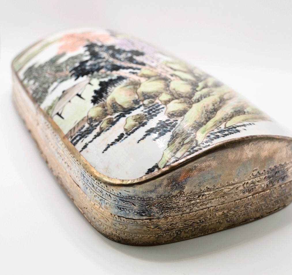 Massive Size Shard Box with Antique Polychrome Shard, Landscape.