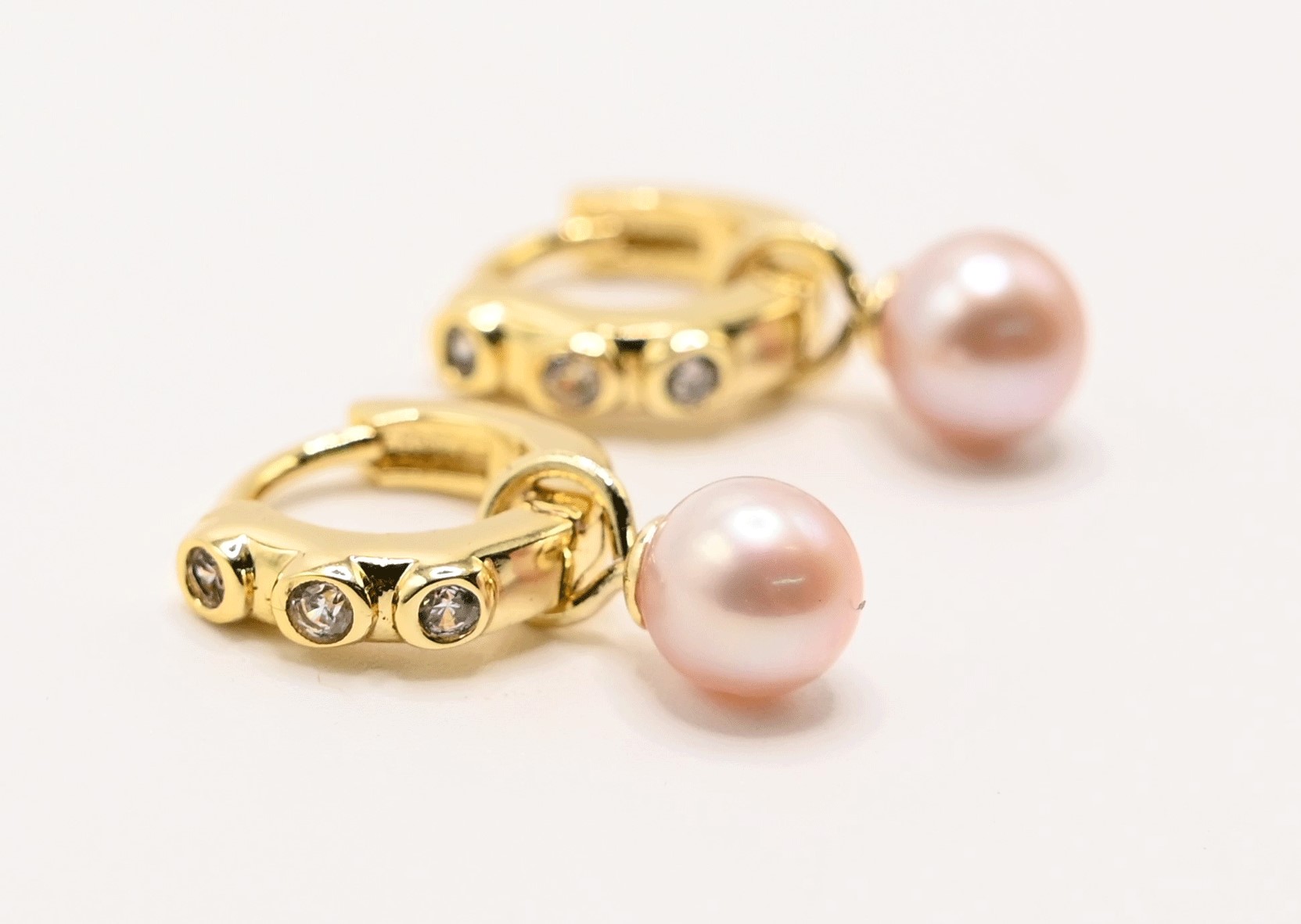 14K Gold-Plated Brass Earrings with Pink Fresh Water Pearls and Zircon