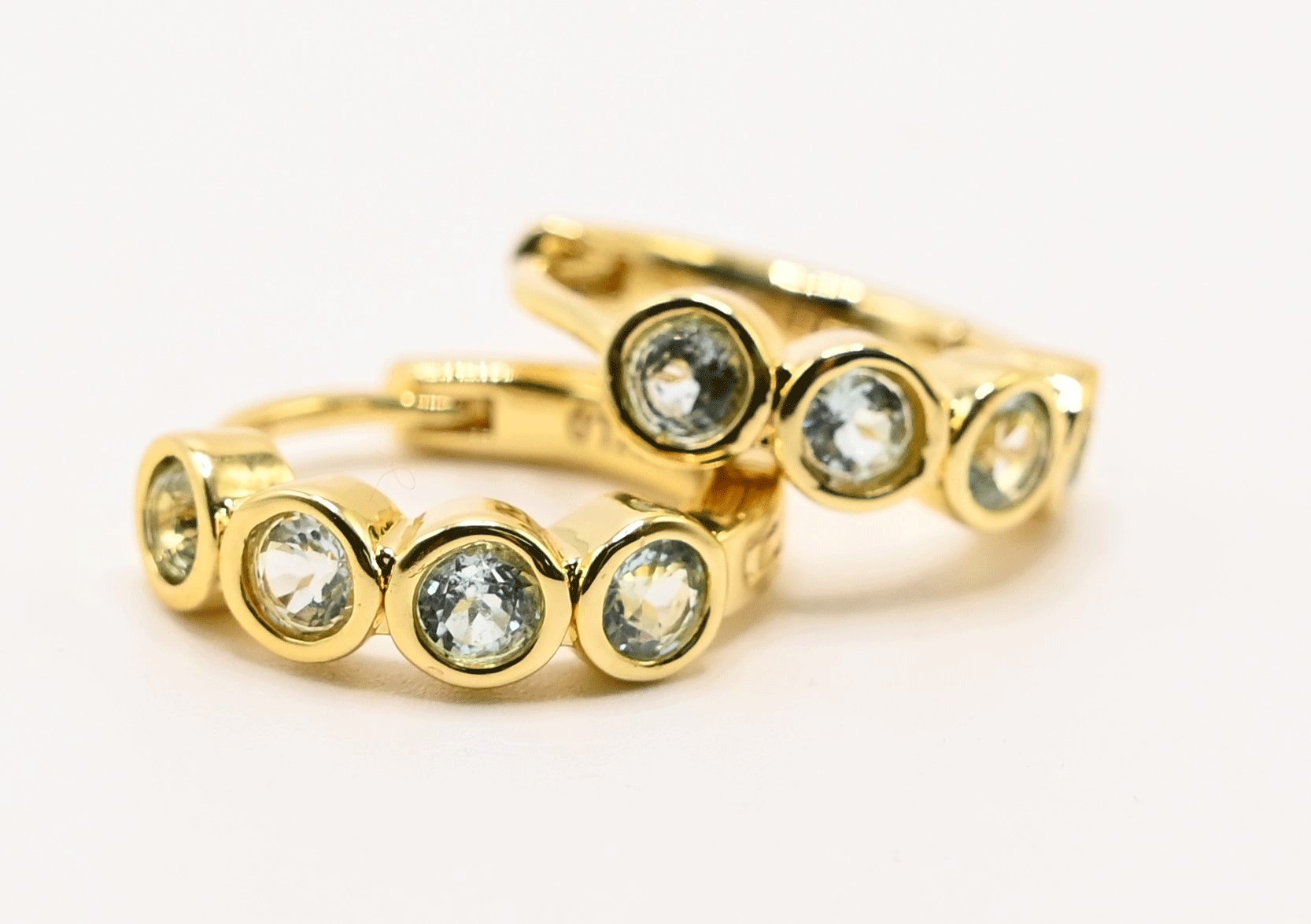 14K Gold-Plated Brass Huggie Style Earrings with Triple Natural Blue Topaz