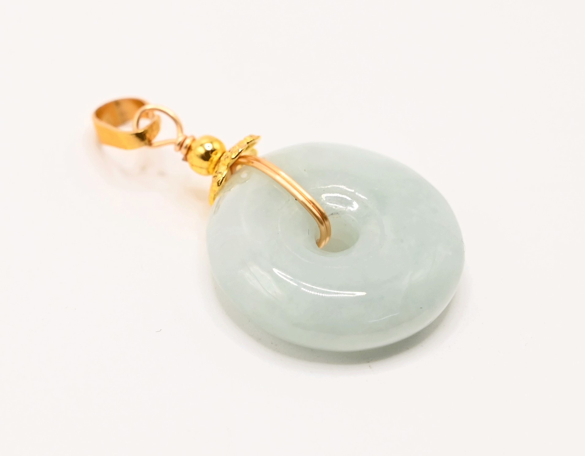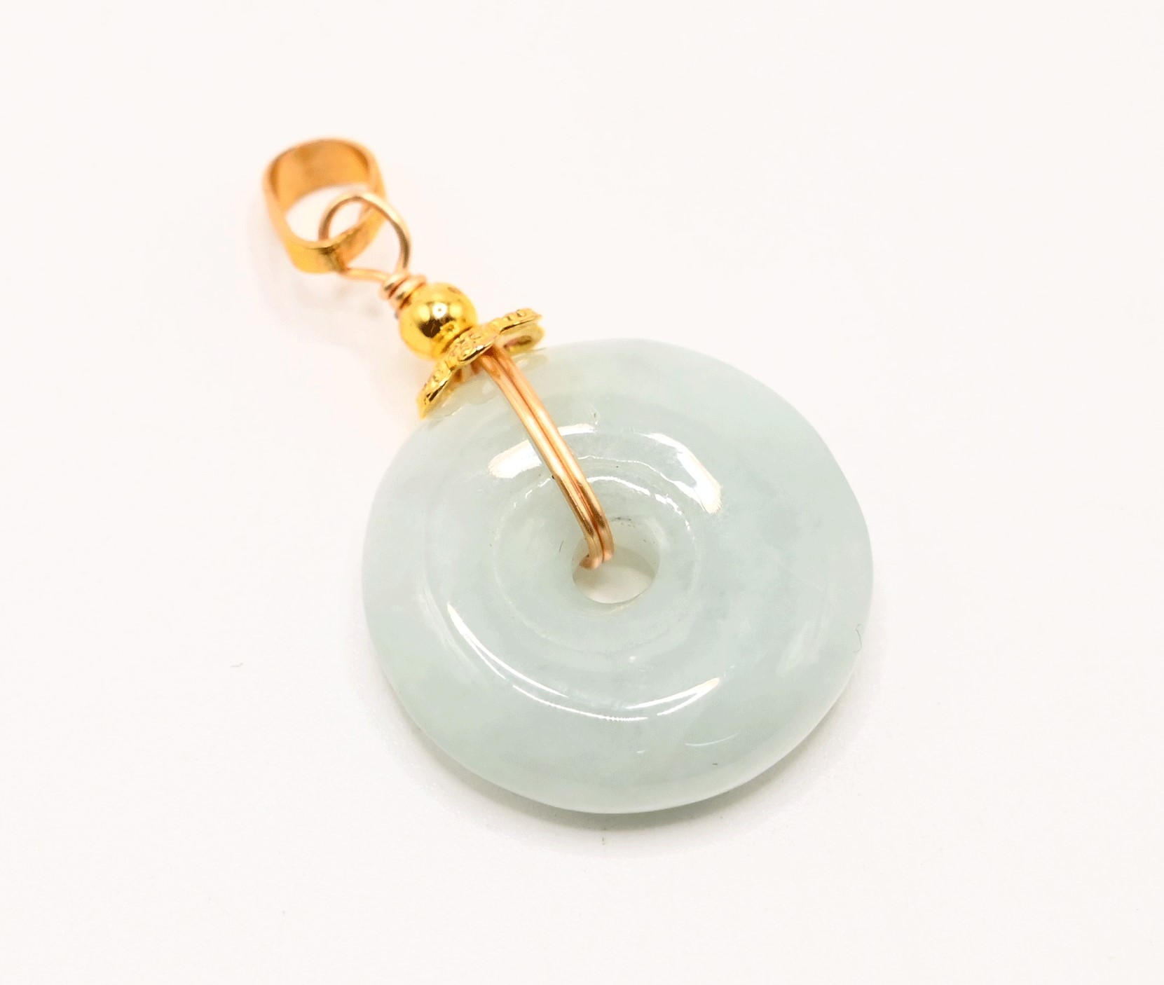 Natural Pale Green Jadeite Bi Pendant in Gold-Plated Sterling Silver Setting