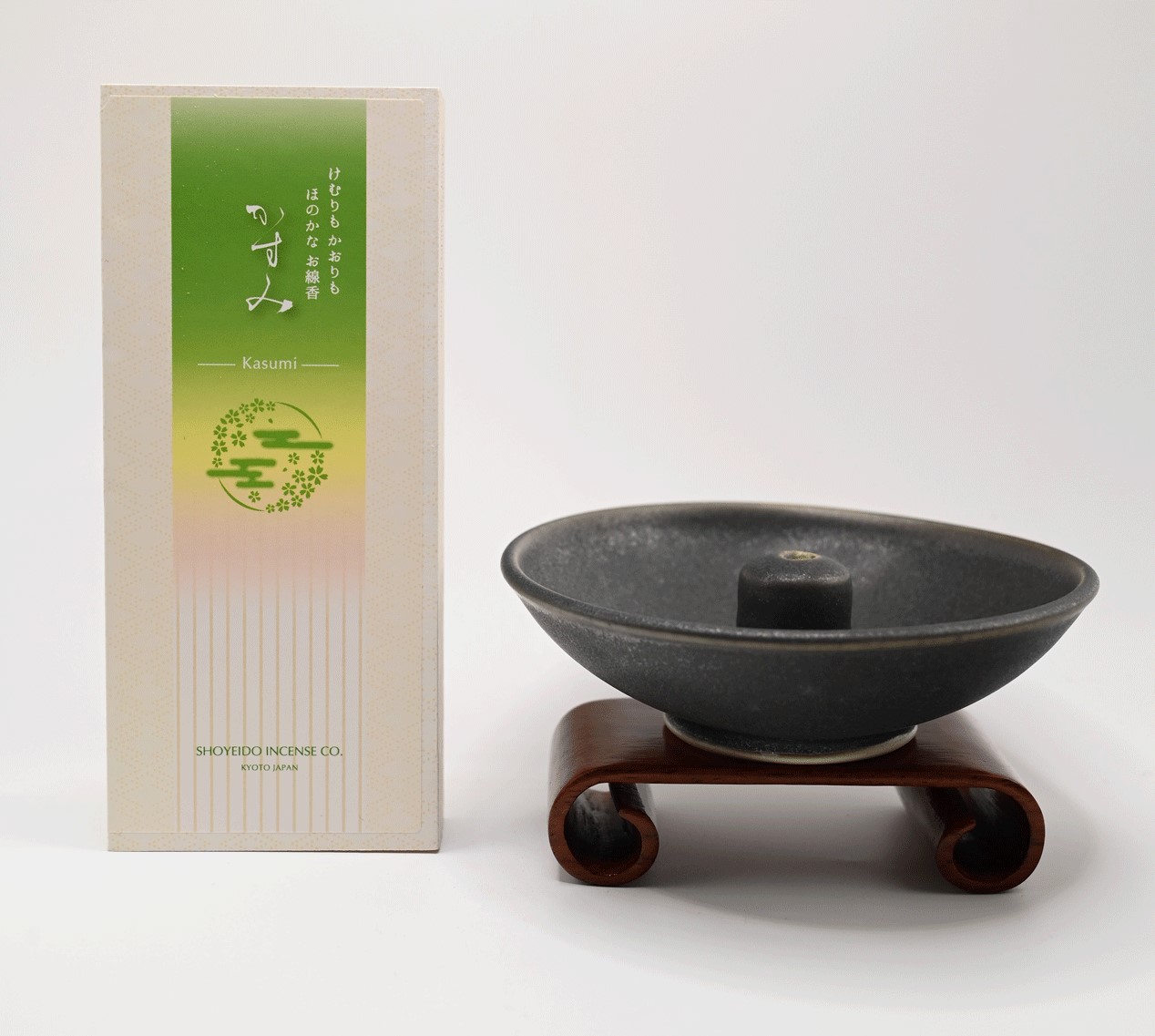 Fine Japanese Incense in Box, Kasumi - Gossamer Low Smoke Incense. This gentle, low-smoke recipe of fine sandalwood and herbs creates a fragrant aura.