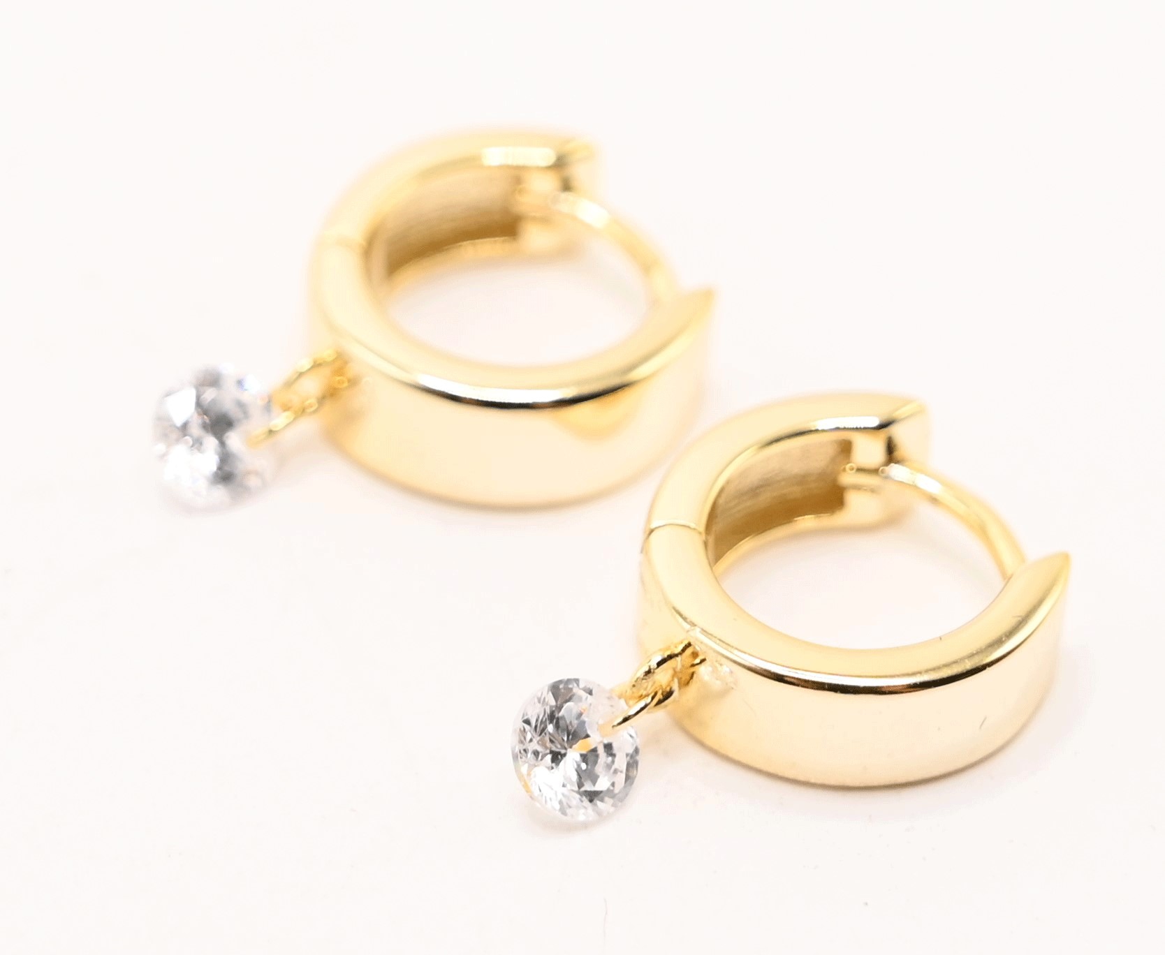 Gold-Plated Sterling Silver Small Thick Hoop Earrings with Zircon