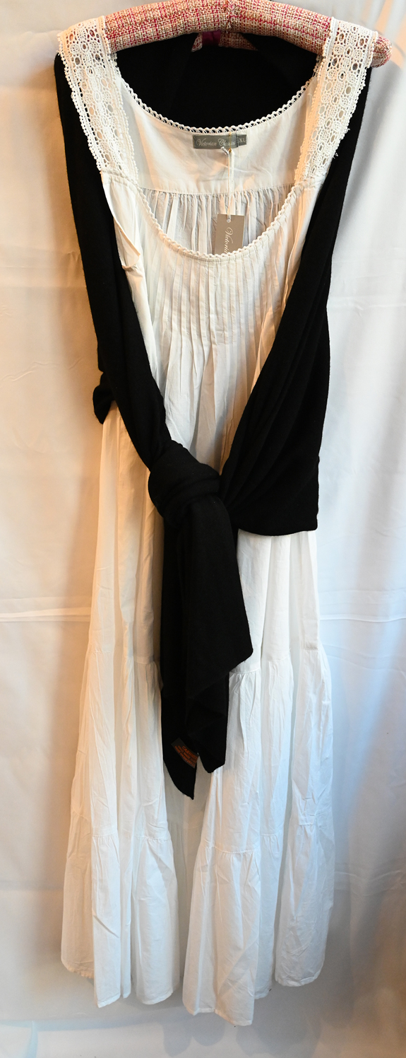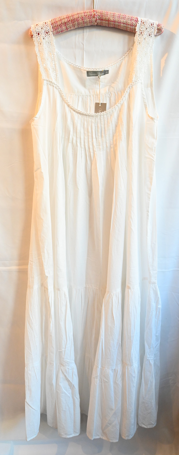 #28573 White Cotton Night Dress with Crouched Edges, XL-Holiday Promotion 15% off