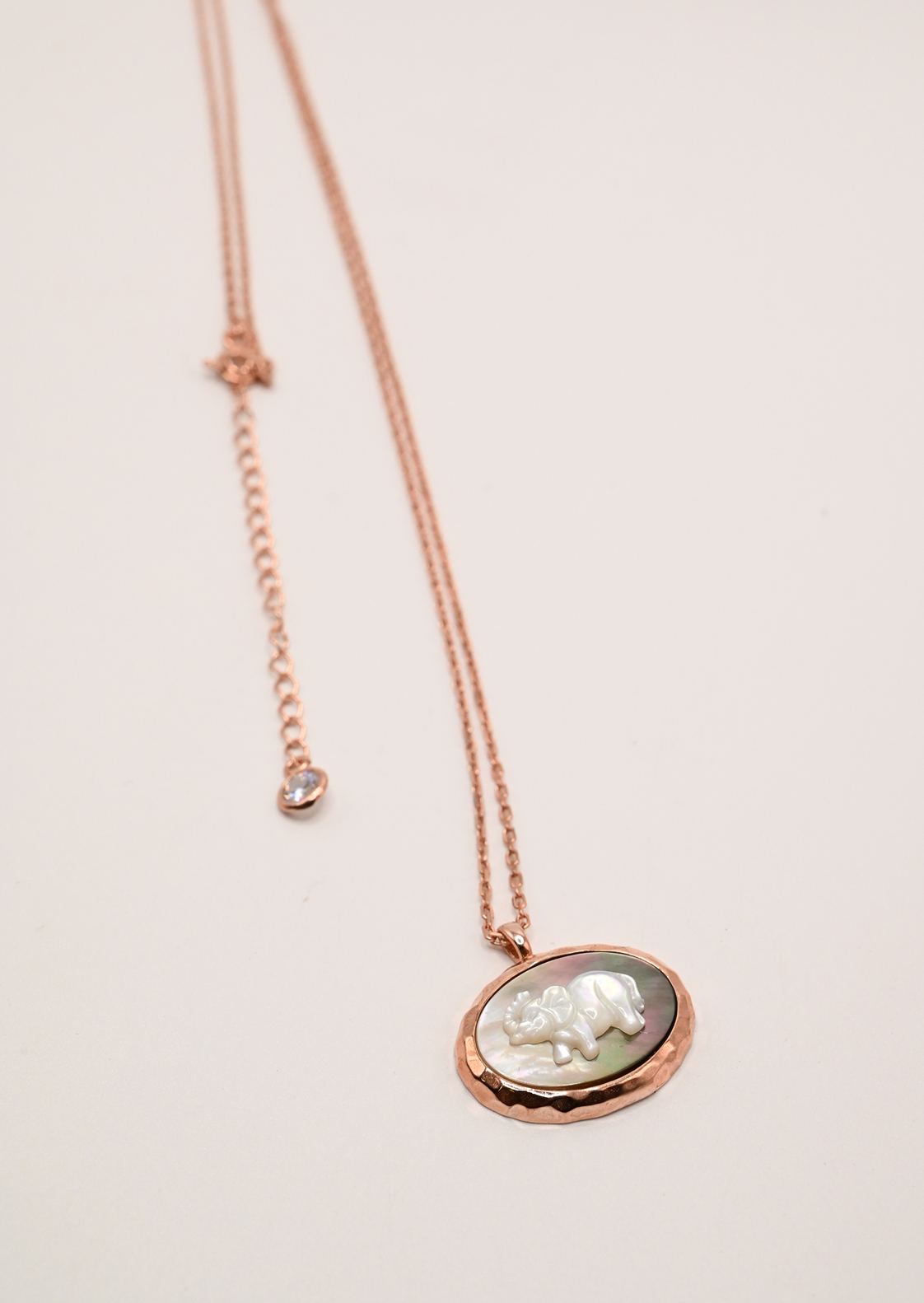 Rose gold-Plated Sterling Silver Necklace with M.O.P Elephant Pendant. 20"