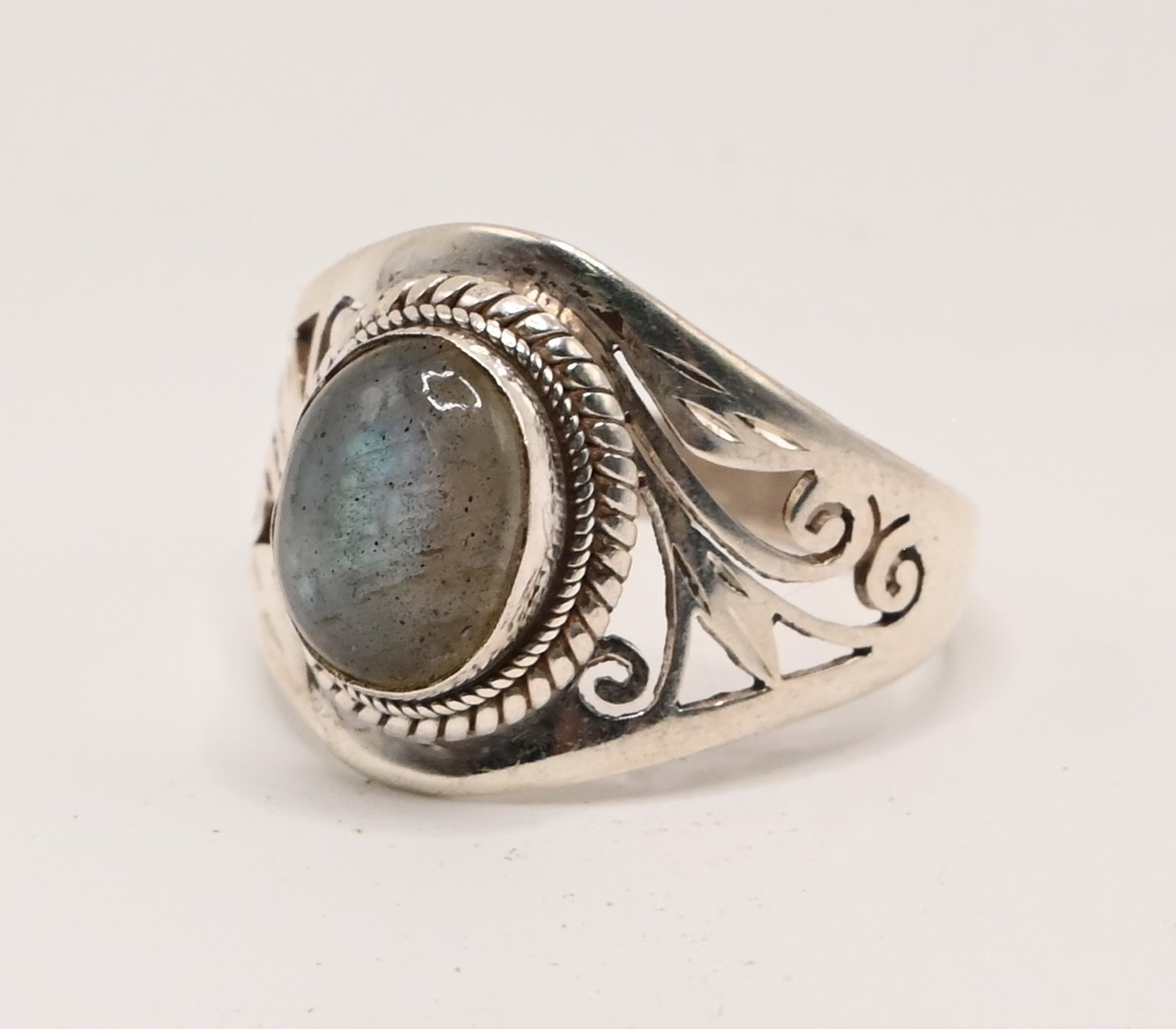 Sterling Silver Ring with Varying Cutout Designs and Stones. All priced at $30 each.