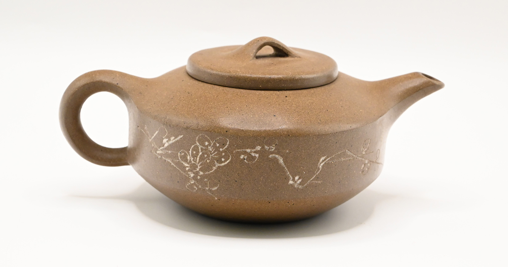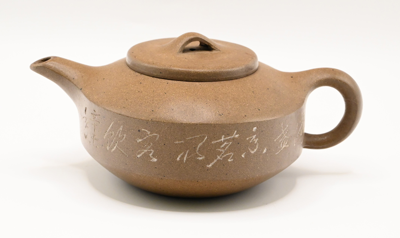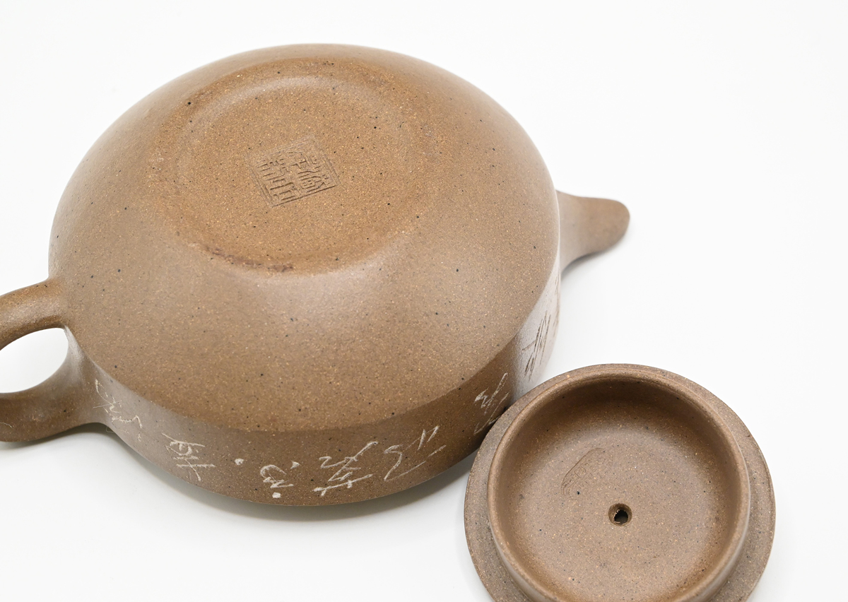Hand-Made Yixing Sesame Clay Flat Shape. Signed. Made in the 80's-90's.