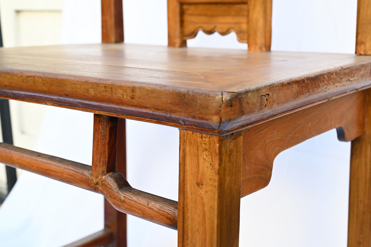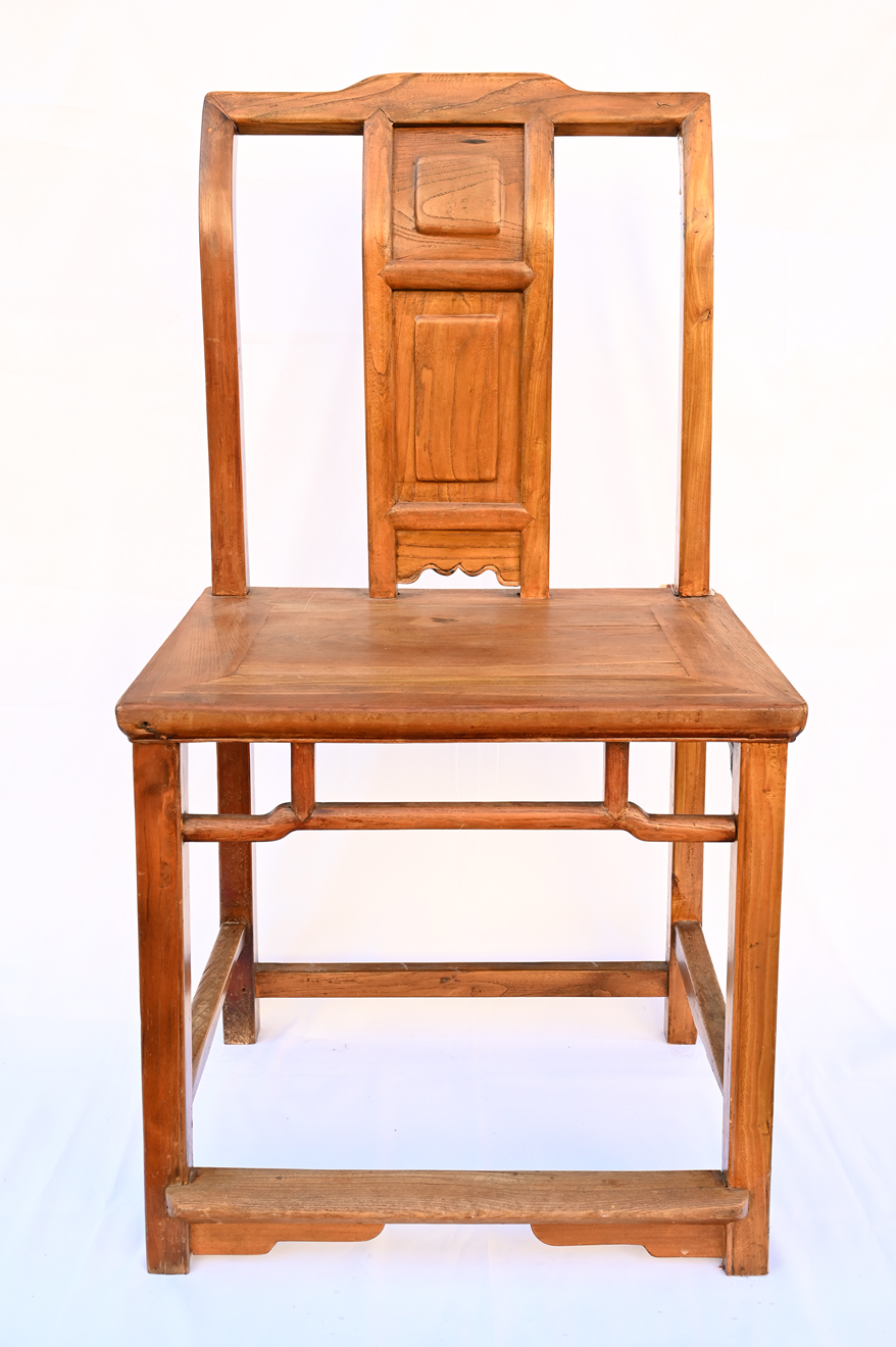 Antique Ming Style Ju Wood Side Chair. This beautiful chair stripped in lighter color is built with great proportions, well balanced like many of the older chairs from the Ming and early Qing period. Its simplicity in design speaks the style favored by the literati class during the golden age of Chinese furniture. The old foot rest is nicely worn from the testimony of time. There are some replacements and repairs in the wood as well as some minor weather cracks, nevertheless, it is elegant and timeless. This chair makes a nice presentation for a home desiring sophistication in style. As is. 180-250 years old.