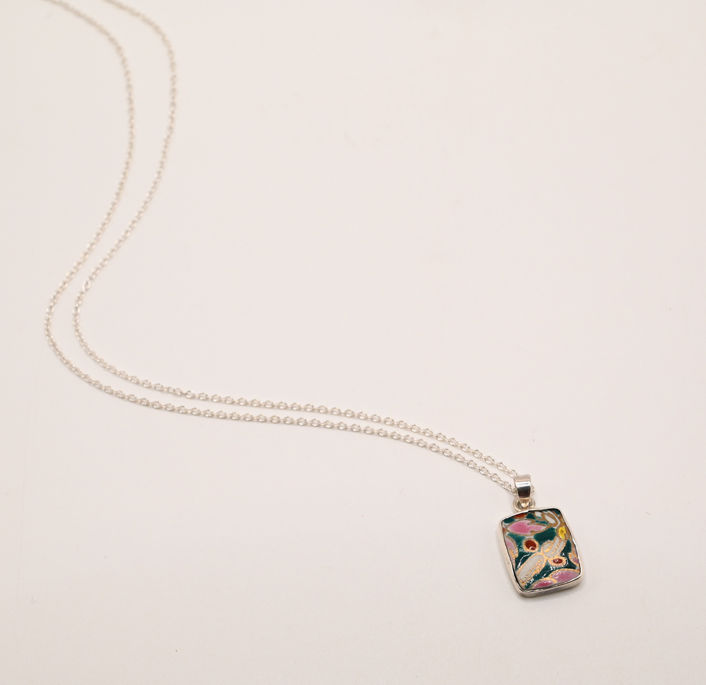 Sterling Silver Necklace with Cased Vintage Porcelain Shard.