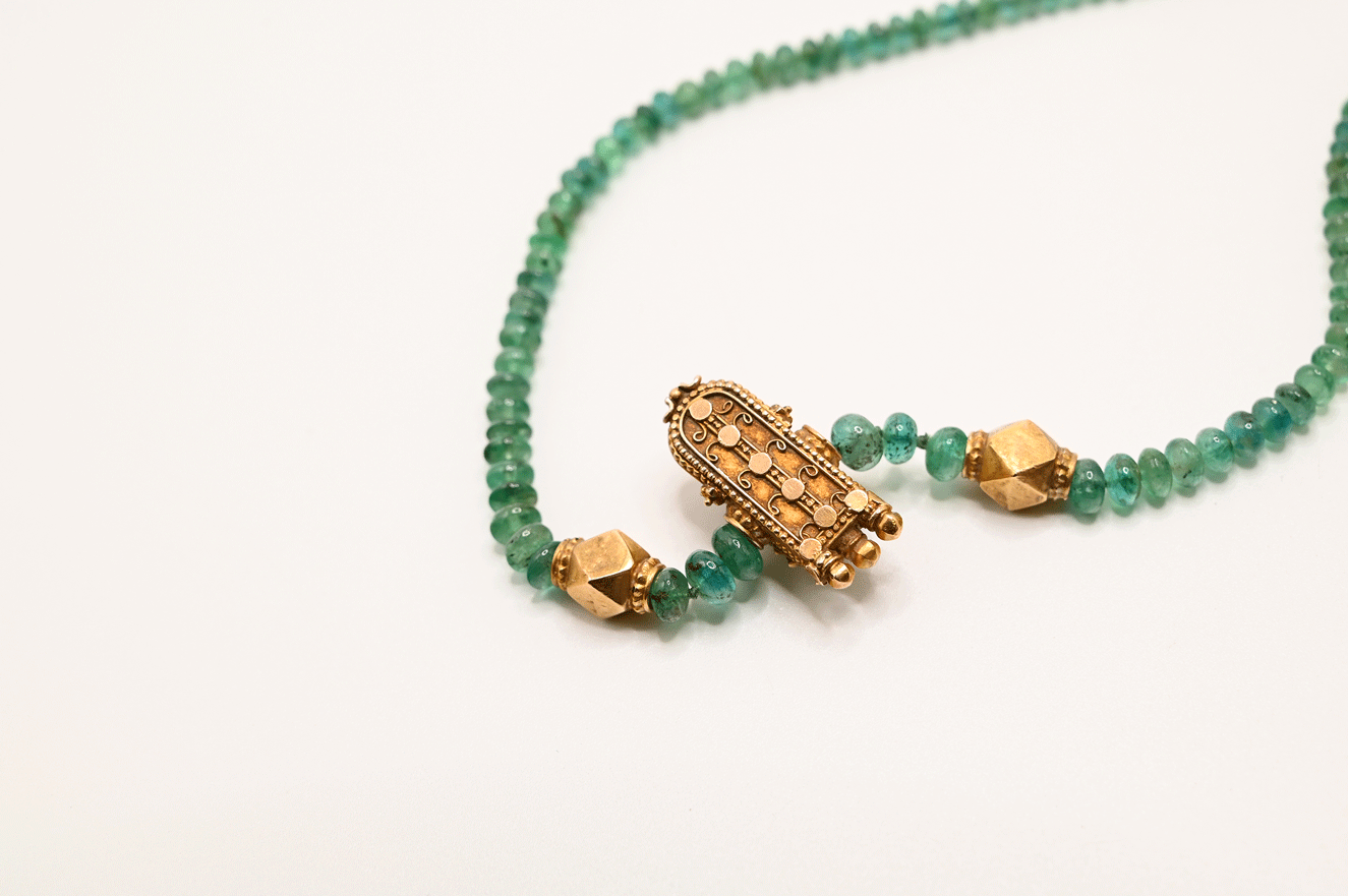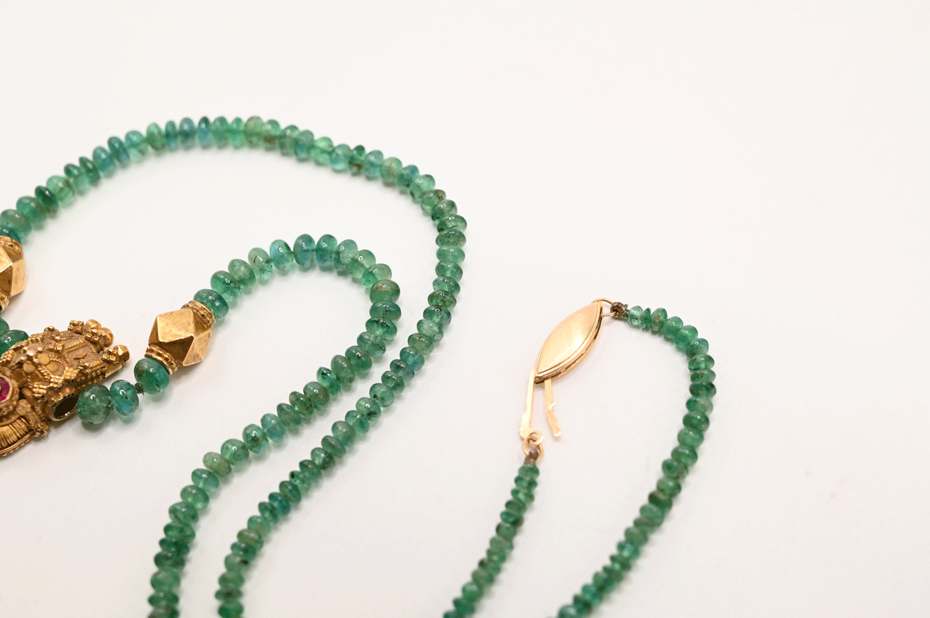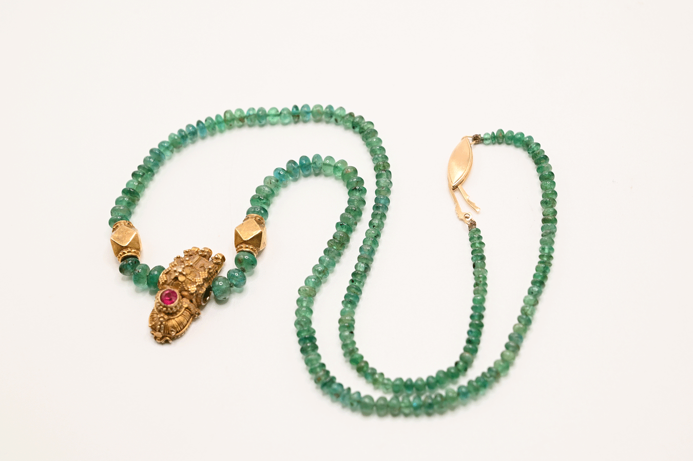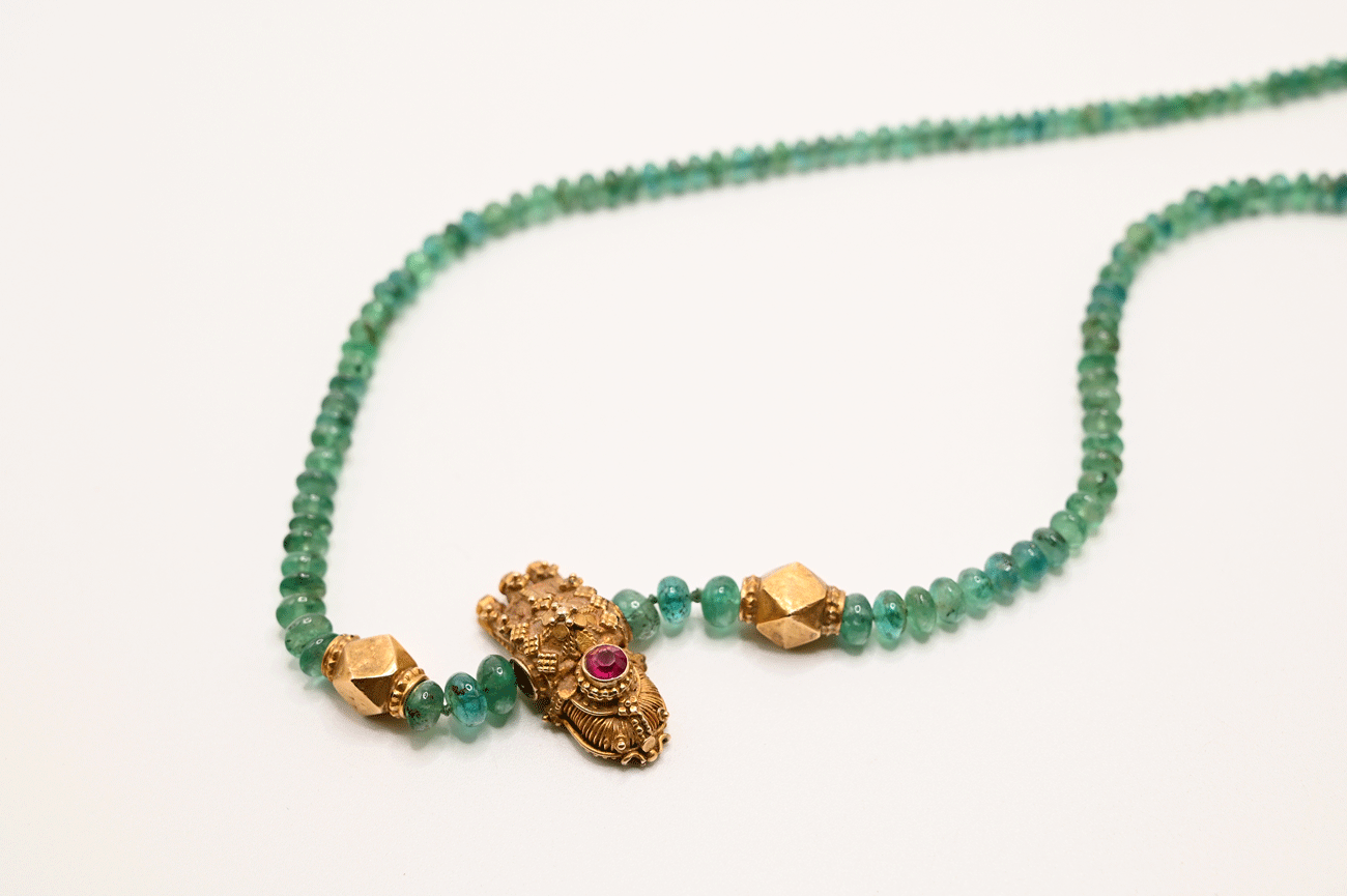 #20999 Necklace with Emerald Beads and Antique Indian 24k Gold Ornaments (February Sale)