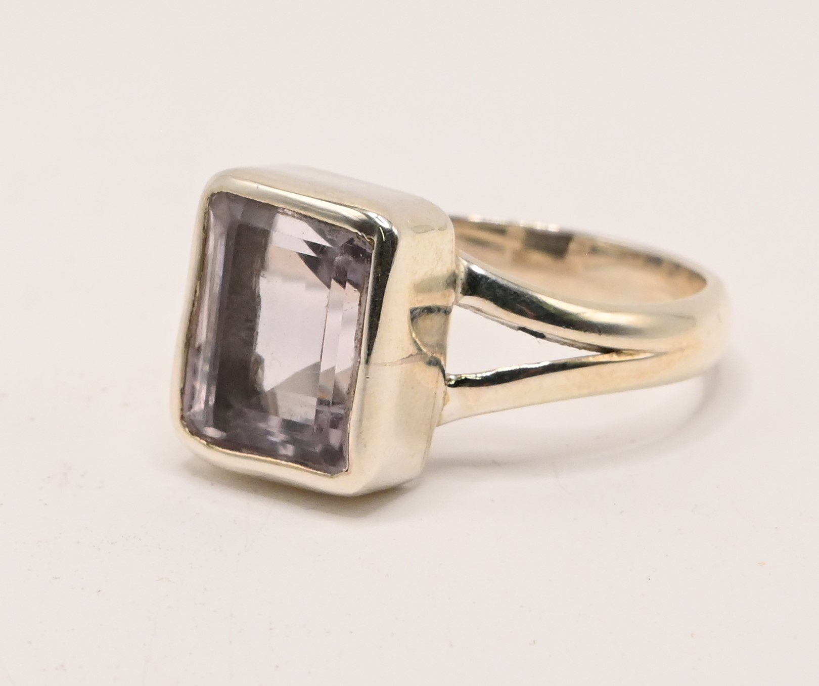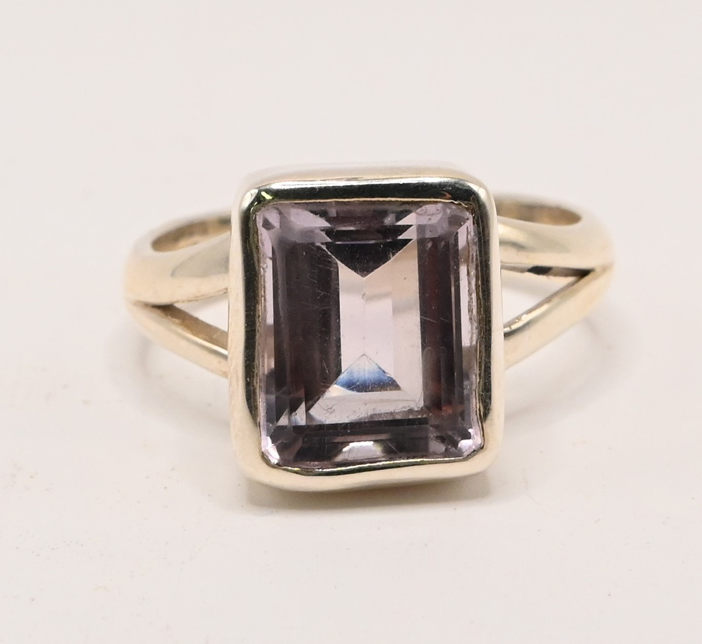 Sterling Silver Ring with Large Rectangular Amethyst Stone.