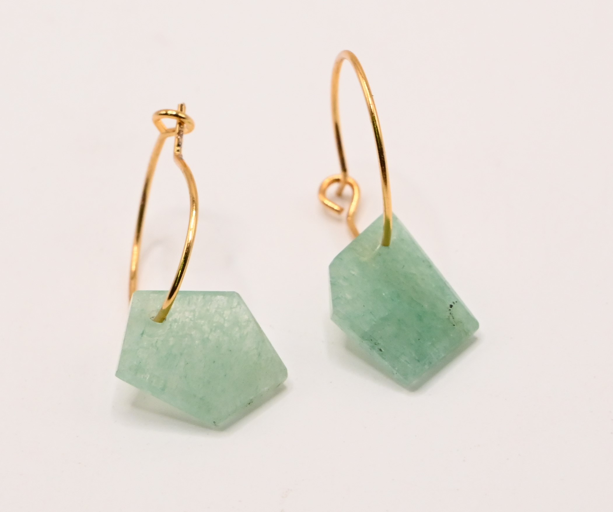 Gold-Plated Sterling Silver Hoop Earrings with Aventurine Stone. This style also comes with Lapis stone and Labradorite.
