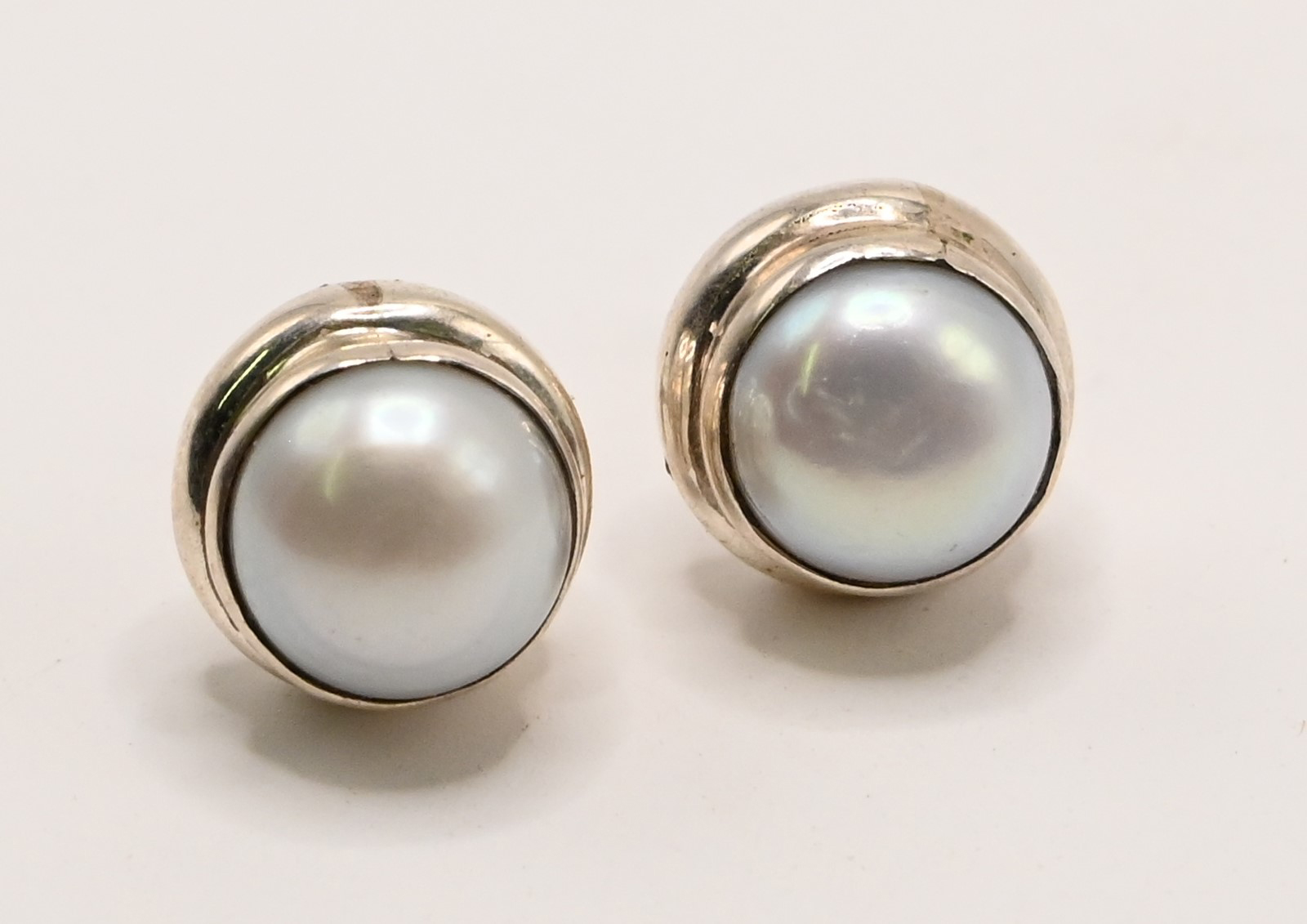 Good Sterling Silver Larger Stud Earrings with Fresh Water Pearl .