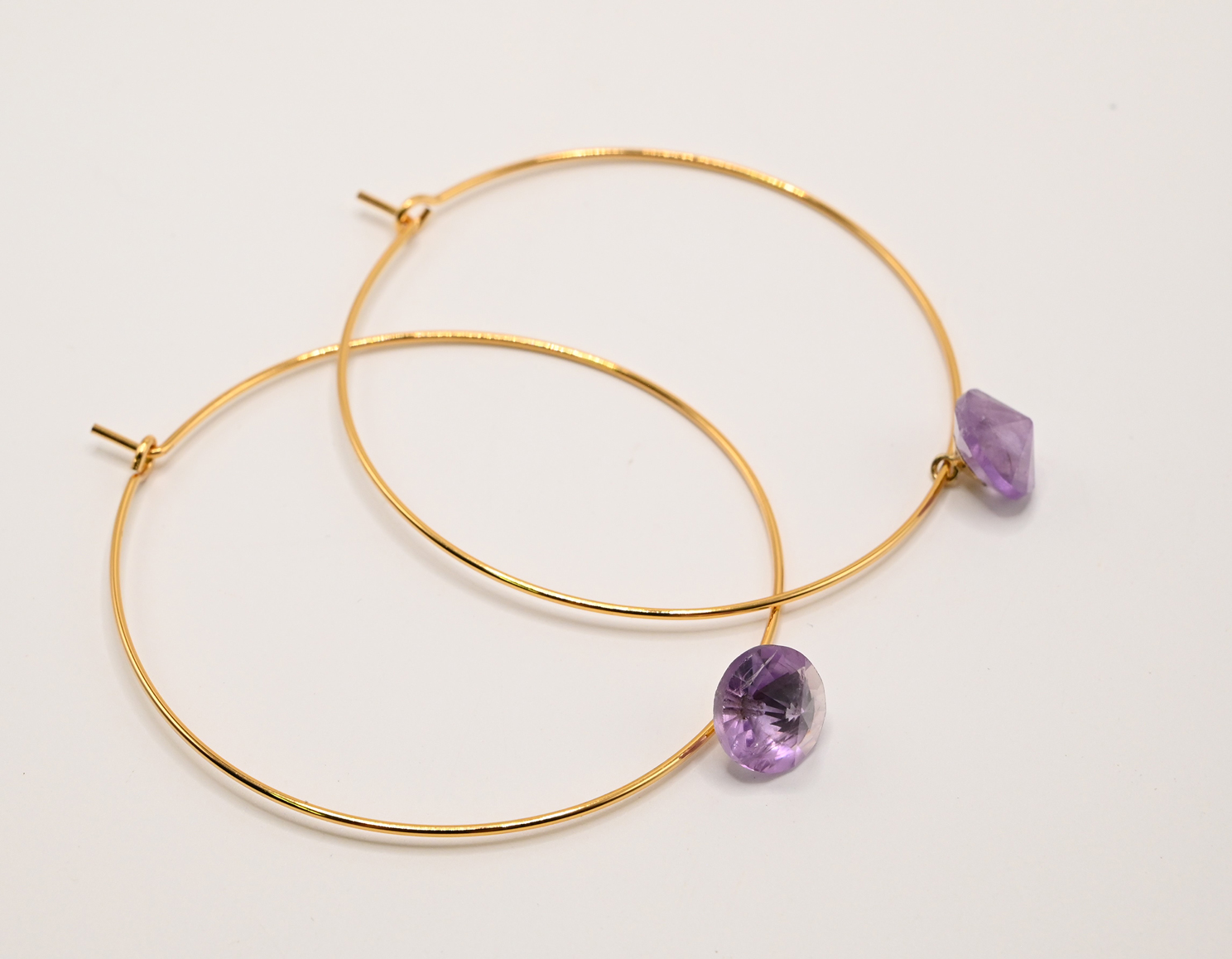 Ex-Large Gold-Plated Sterling Silver Hoop Earrings with Amethyst Stone.