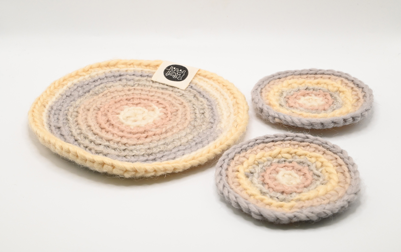 Hand-Knitted Wool Teapot Coaster from Nepal. Price is for one larger coaster only.