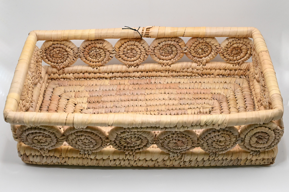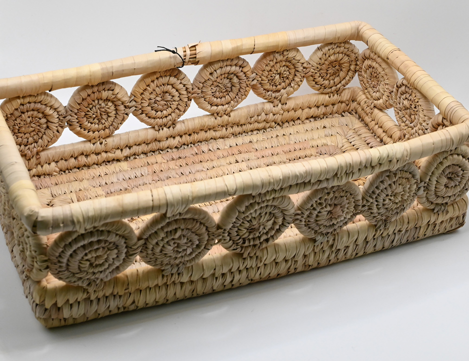 Beautiful Hand-Woven Reed Bread Basket with Floral Pattern from Bangladesh.
