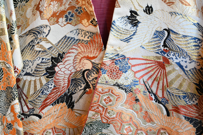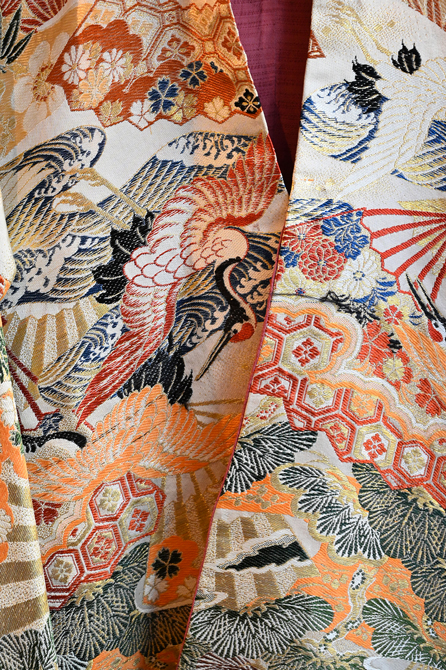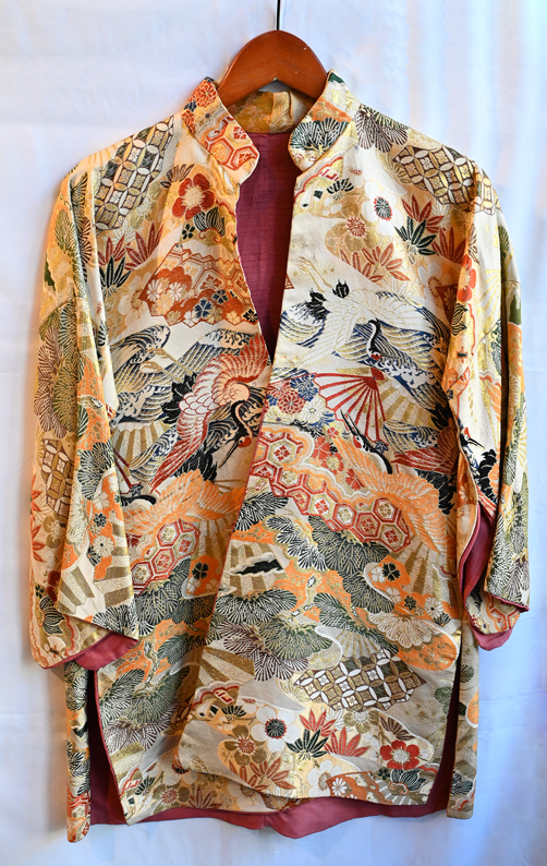 Contemporary Kimono Jacket Made with Old Japanese Silk Obi. One-of-a-kind.