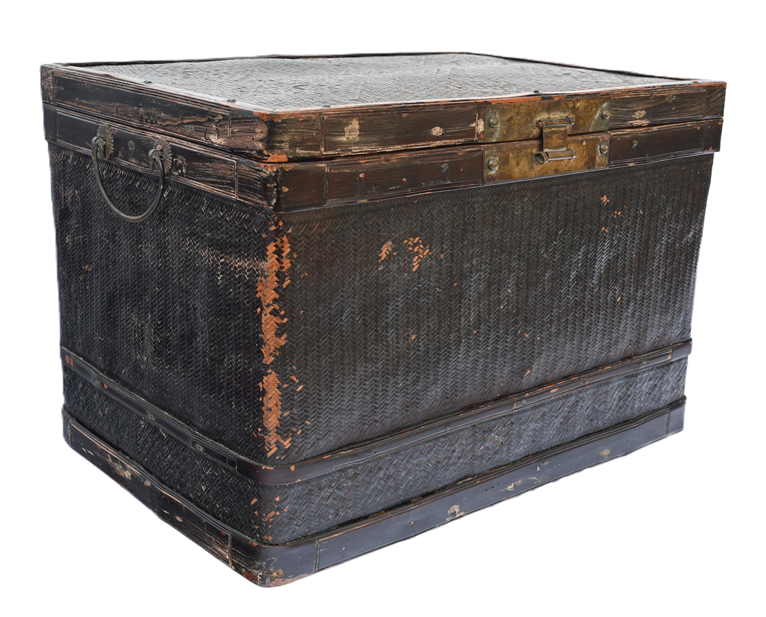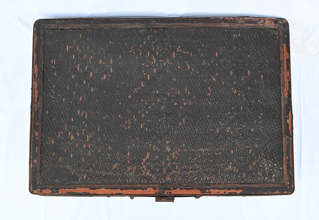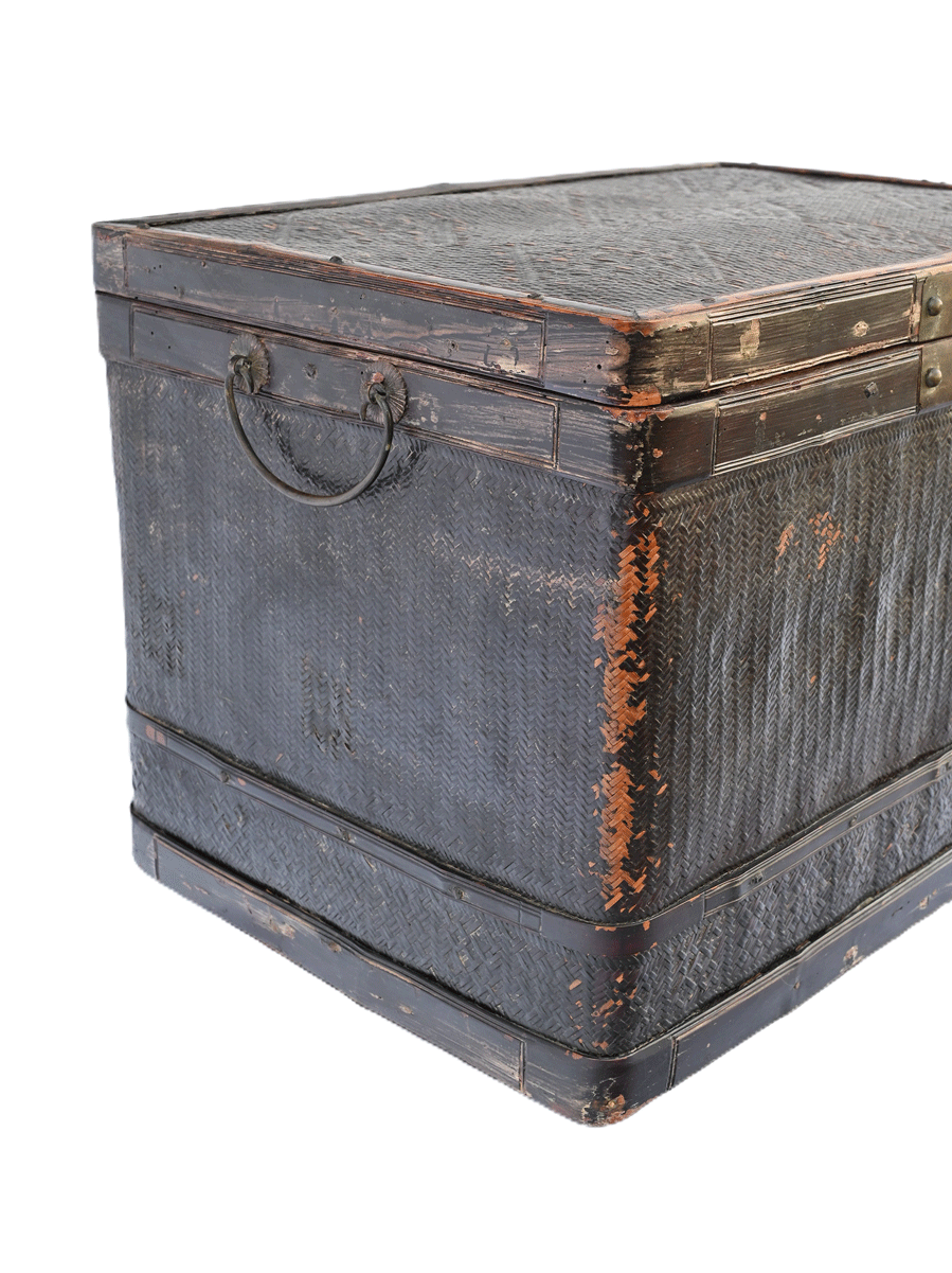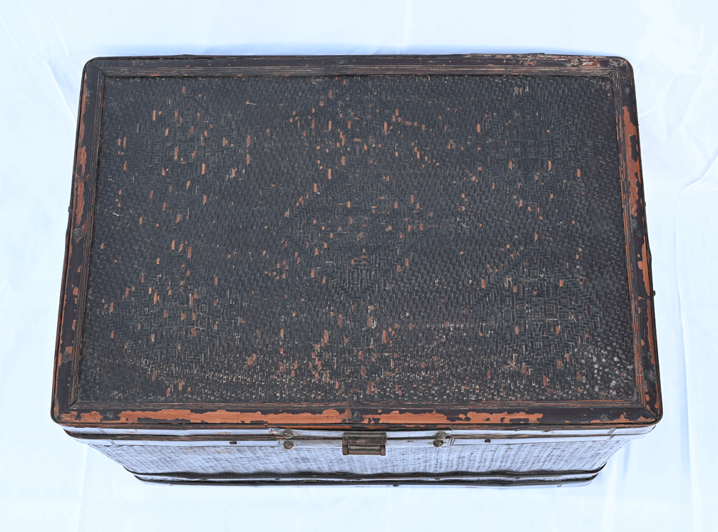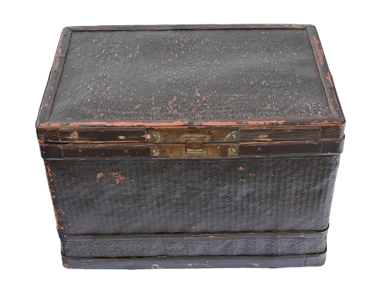 #12839 Antique Book Chest with Woven Bamboo and Old Black Lacquer