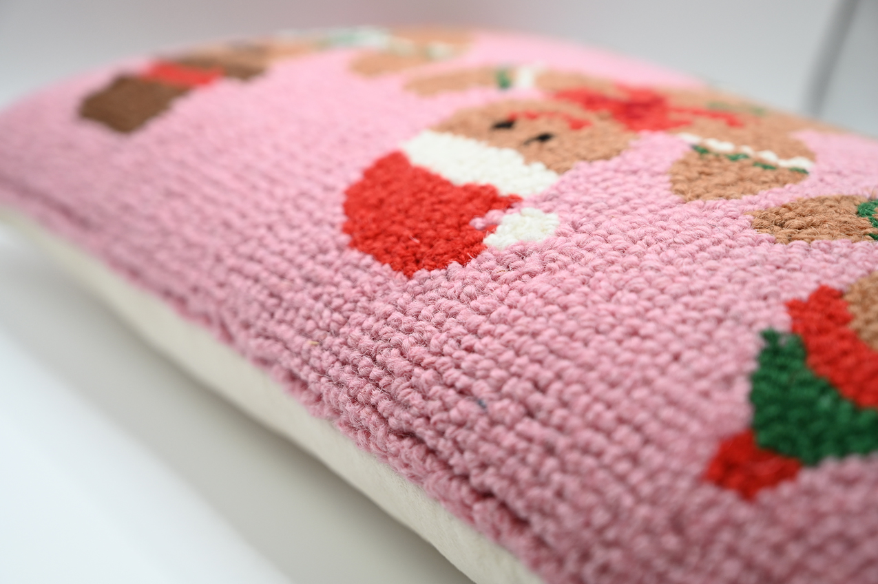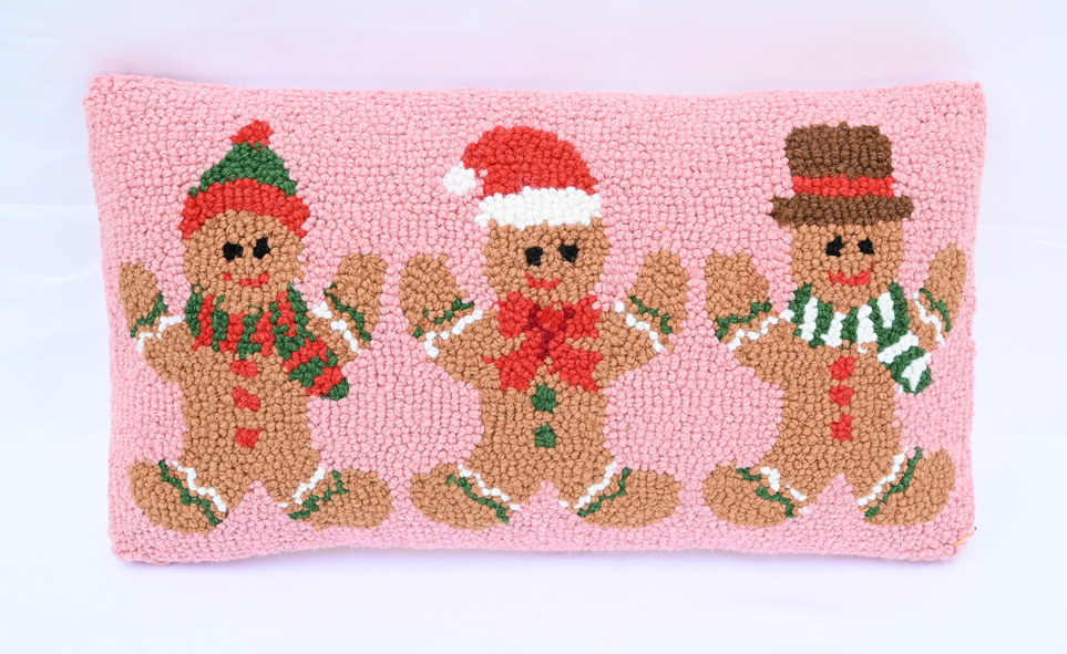 #28518 Hand-Hooked 100% Wool Christmas Pillow Cover with Insert, Ginger Bread Men
