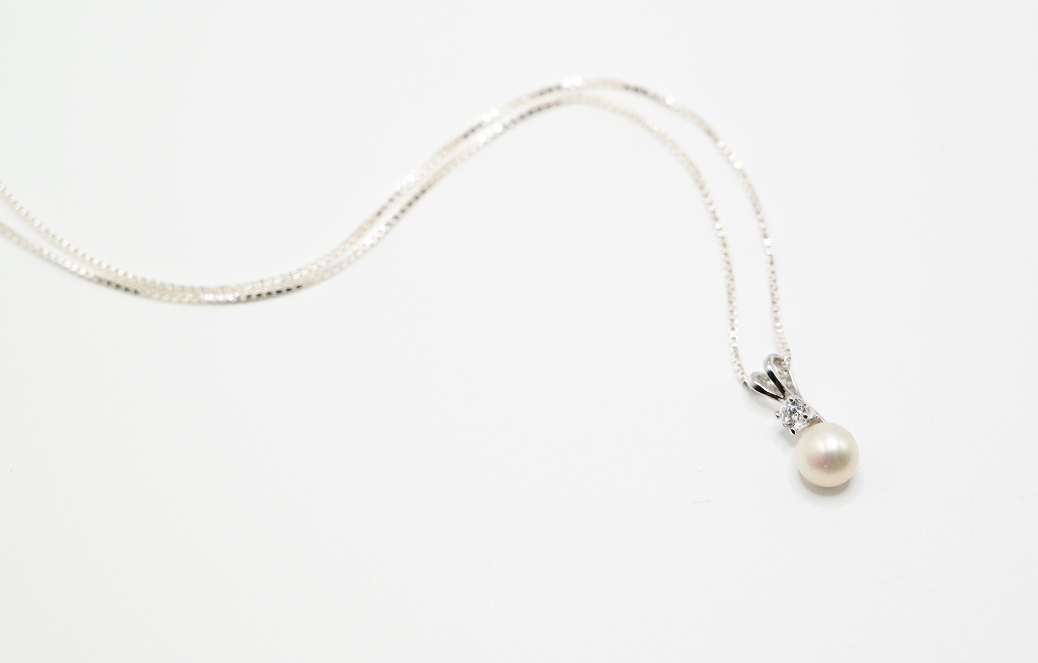 #28584 Sterling Silver Necklace with Fresh Water Pearl and Zircone Stone (SOLD)