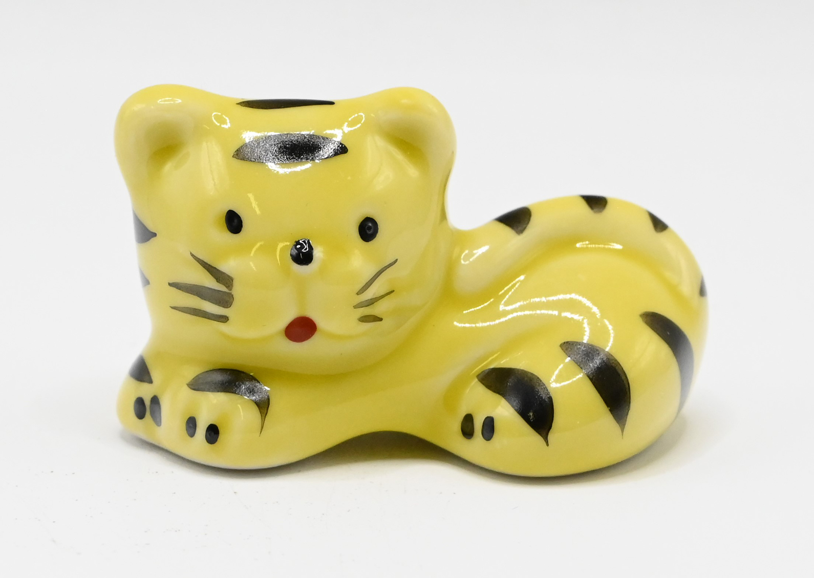 A playful yellow tiger chopstick rest, hand-painted with bold black stripes and a sweet expression, bringing a touch of charm and good fortune to your dining table.